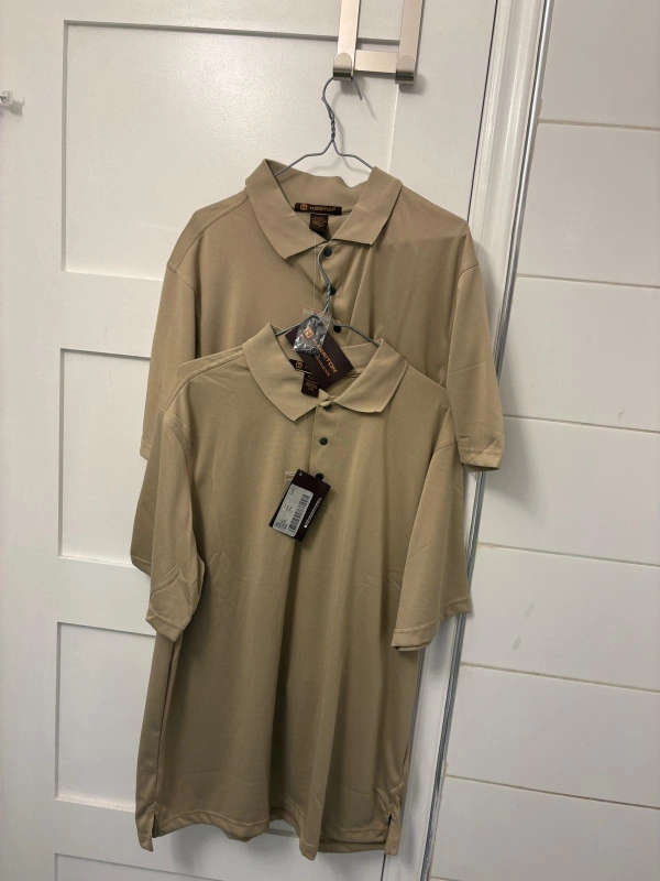 2 brand new Harriton polo shirts. The shirt has a classic collar with a button closure. Great for casual wear or a relaxed day at the office. $15 each or two for $25