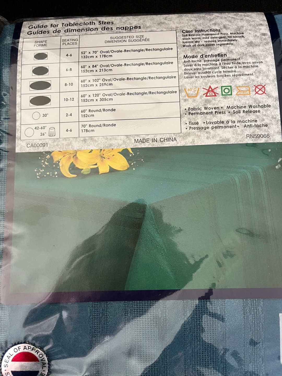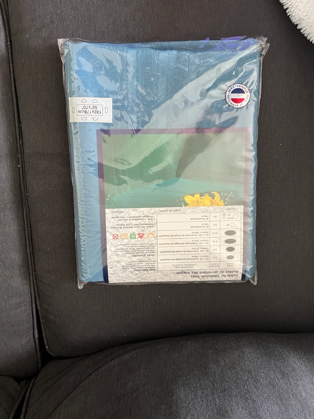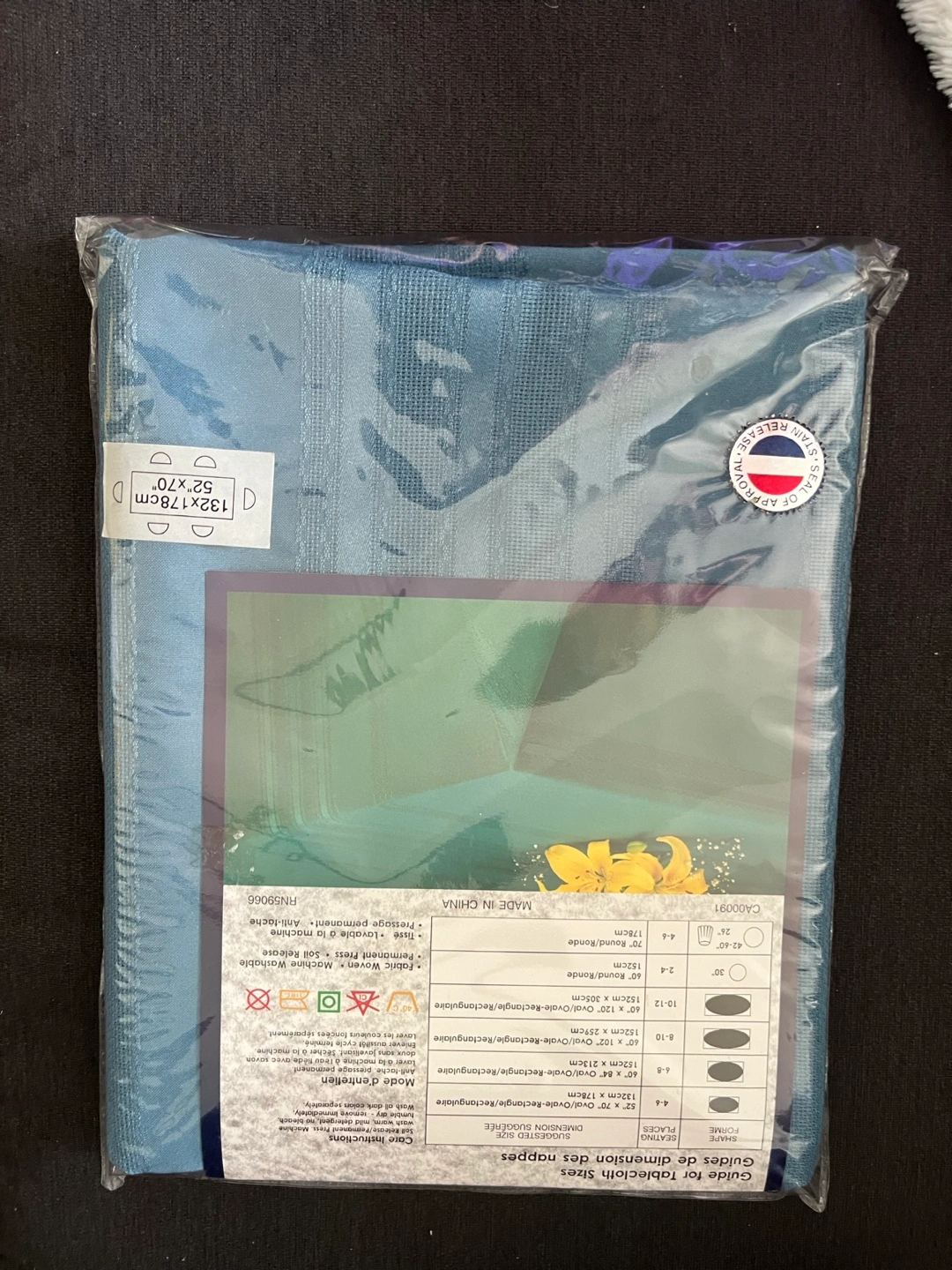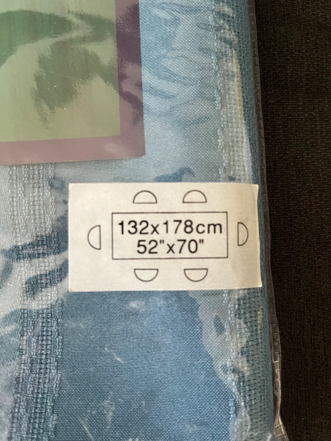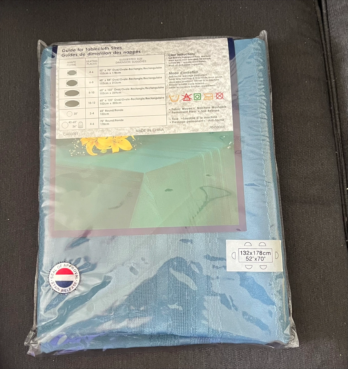 Tablecloth is packaged in plastic. The tablecloth is blue. A perfect item for hosting a cozy meal at home. Rectangular 132 X 178 cm / 52 X 70 Brand new