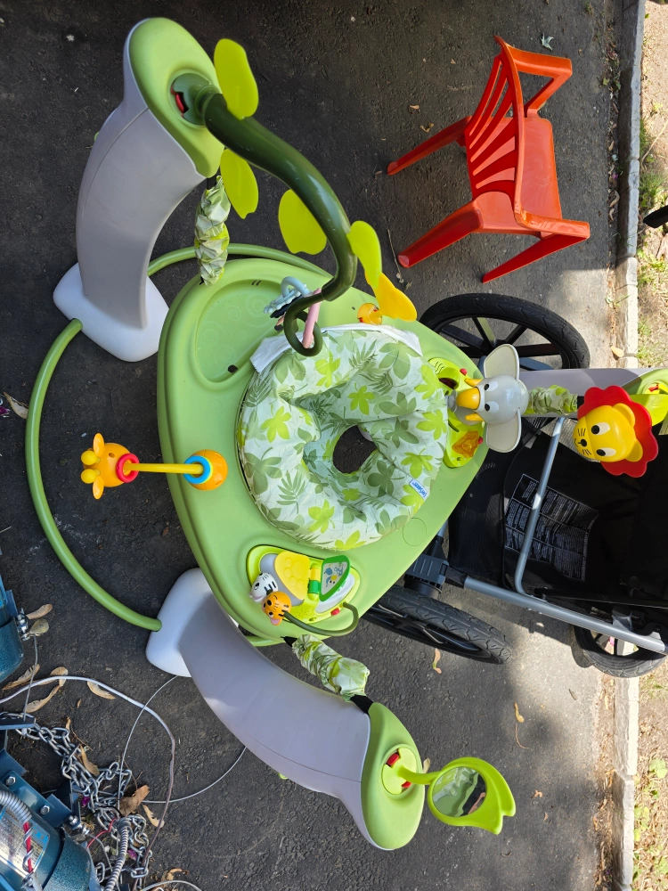 Green baby activity center Includes toys and a seat. A great spot for baby to relax and have fun.