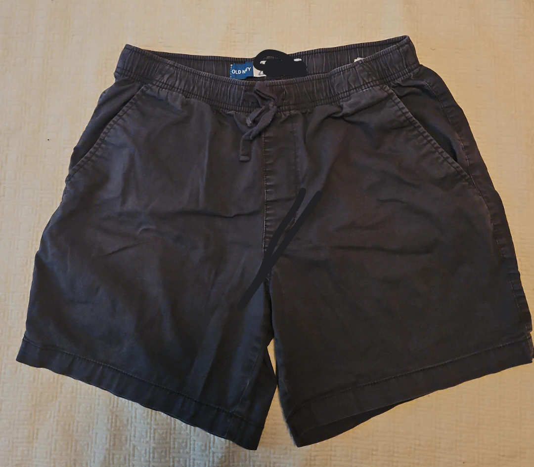 Dark coloured shorts. Men's size Small. Features two front pockets and a drawstring. Elastic waistband. These shorts would be perfect for a relaxing day at the cottage.
