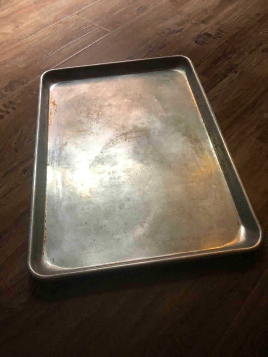 This is a commercial grade baking sheet, perfect for baking cookies or roasting vegetables. It does show signs of wear, which you can see in the photos, but it's minimal, and could possibly come out with some good scrubbing. Still perfectly functional for all your cooking needs, just don’t have a oven at this apartment, otherwise I’d keep it. * Dimensions: 32cm x 43cm * Material: Aluminum 📍Spadina/Bloor and Bay/Grosvenor ⭐️Bundle with other things on profile for extra discounts