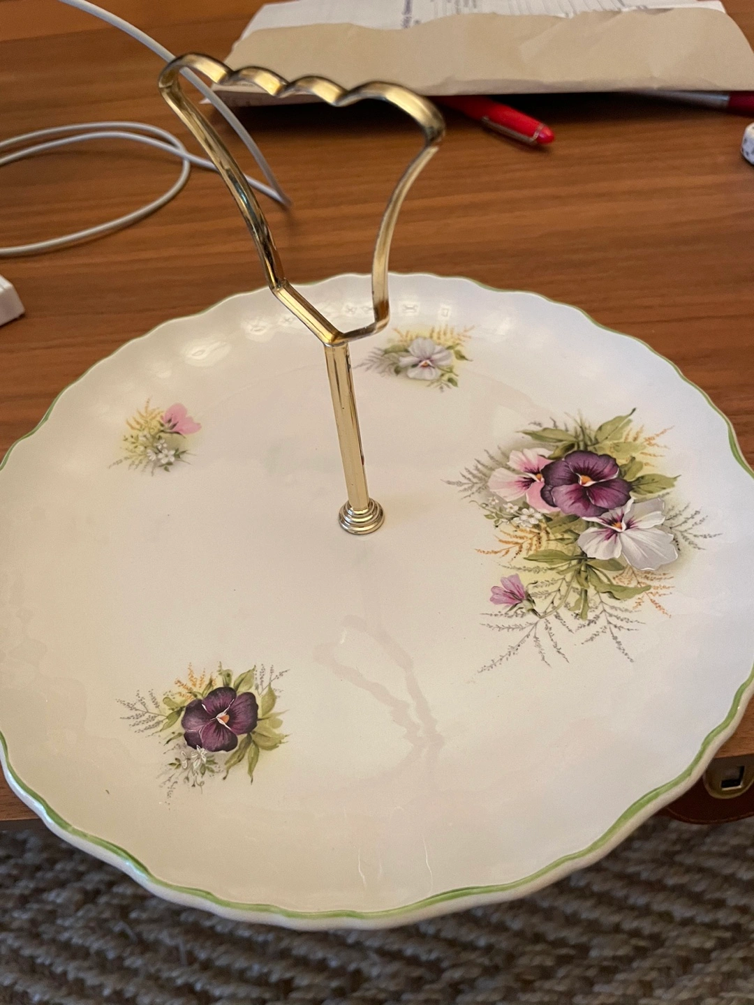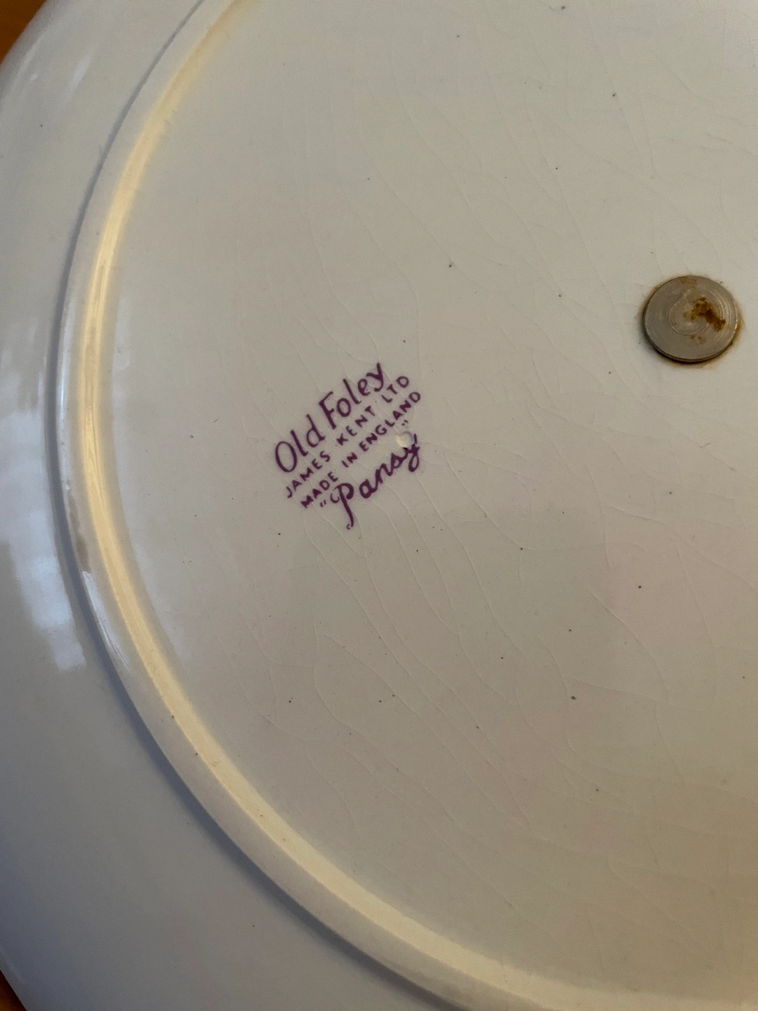 Vintage one tier plate for sandwiches or goodies. Good condition. Made in England. Old foley James Kent. For collectors of vintage or whoever likes pretty items for serving pansy pattern.