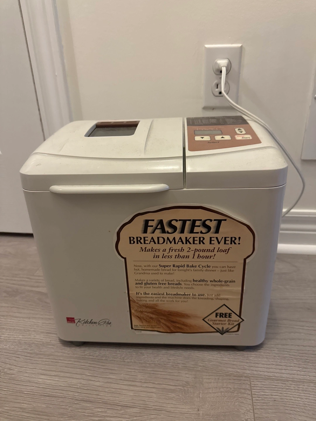 White breadmaker. Been used a few times but has been sitting in the basement, can make a 2-pound loaf Take a look at my other items if interested. Can bundle with my other stuff for cheaper! Can meetup in Markham. Cash only please