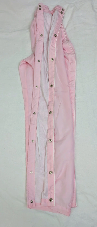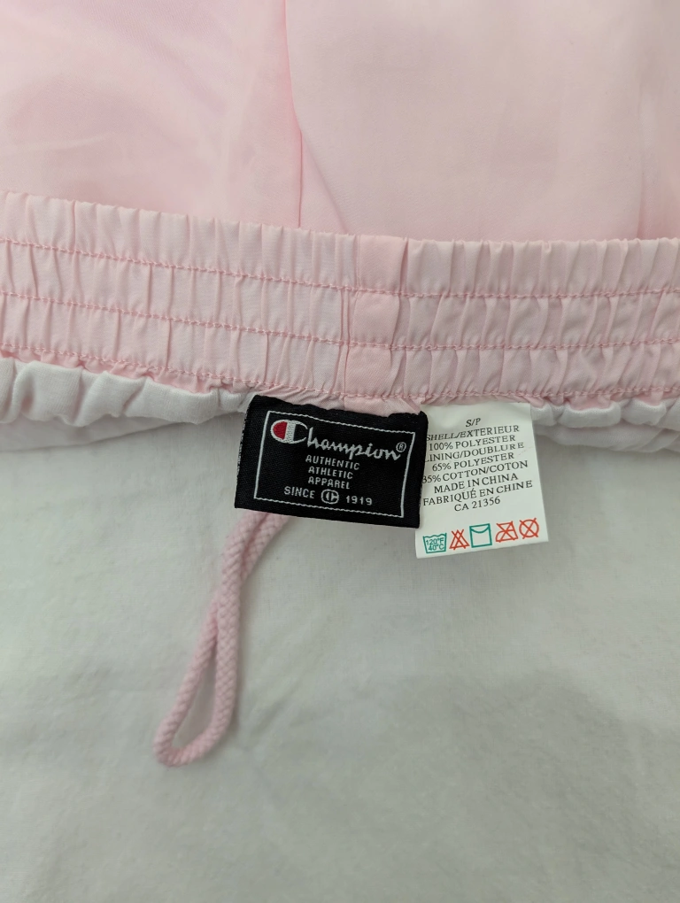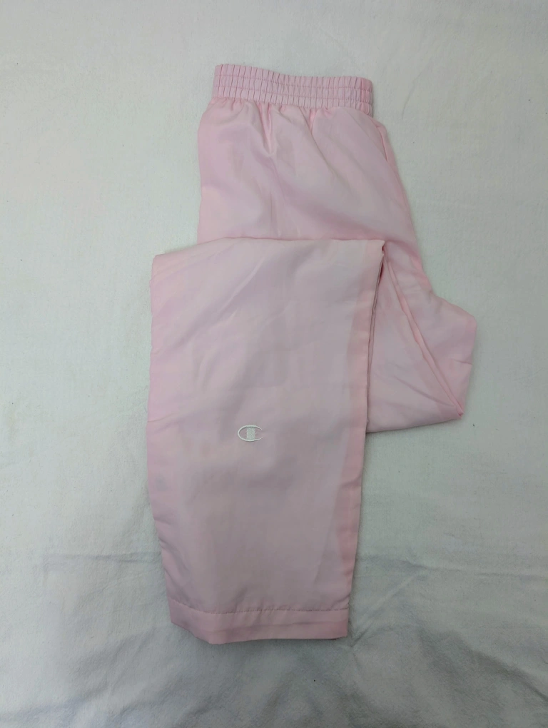 Light Pink Champion Tear Away Pants Size Small These loose-fitting pants feature a drawstring elastic waistband with snaps along the sides. The soft pastel color adds a fashionable touch, making them ideal for both casual outings and athletic activities. Enjoy a relaxed fit that ensures ease of movement throughout the day. Pick up Keele and Rogers Cash only 90s 2000s sporty Y2K throwback style champion clothing y2kaesthetic y2kstyle retro