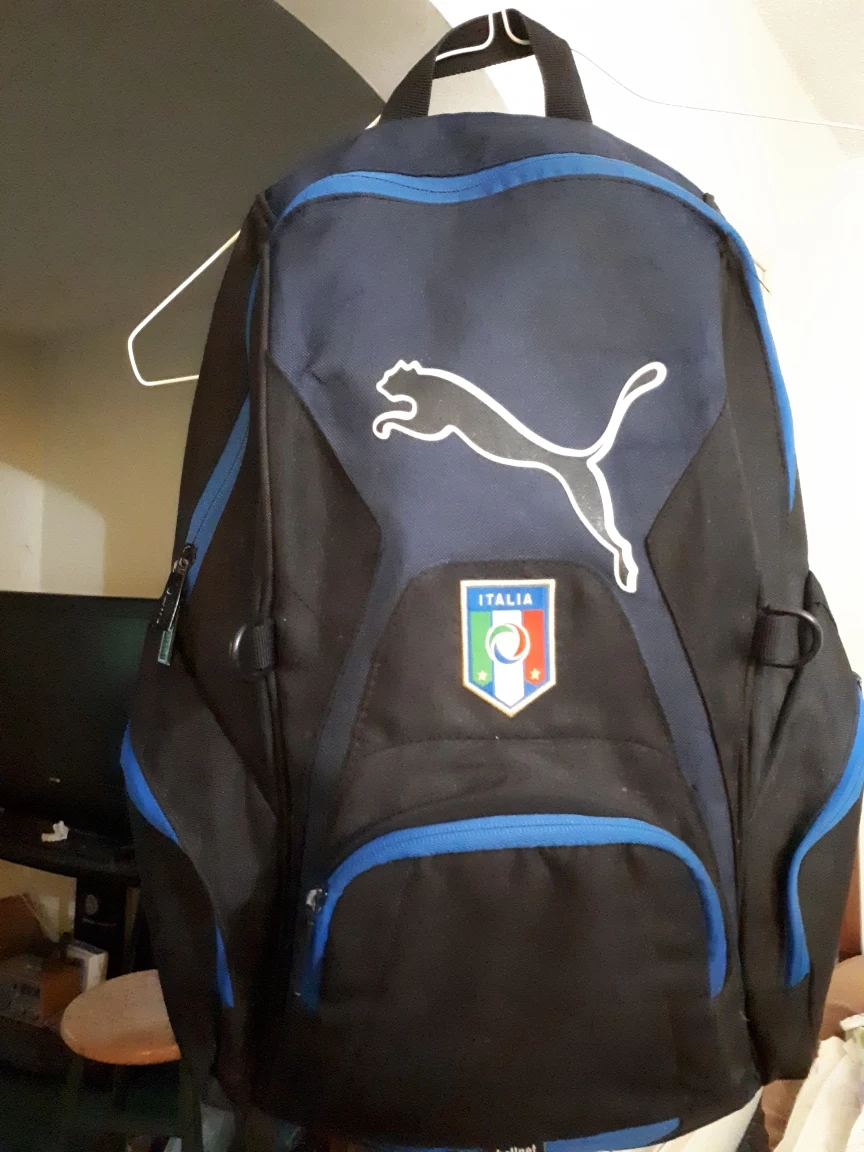 Navy and black backpack. Features a large Puma logo, and the Italia crest. Perfect for carrying all your essential items to help keep you organized.