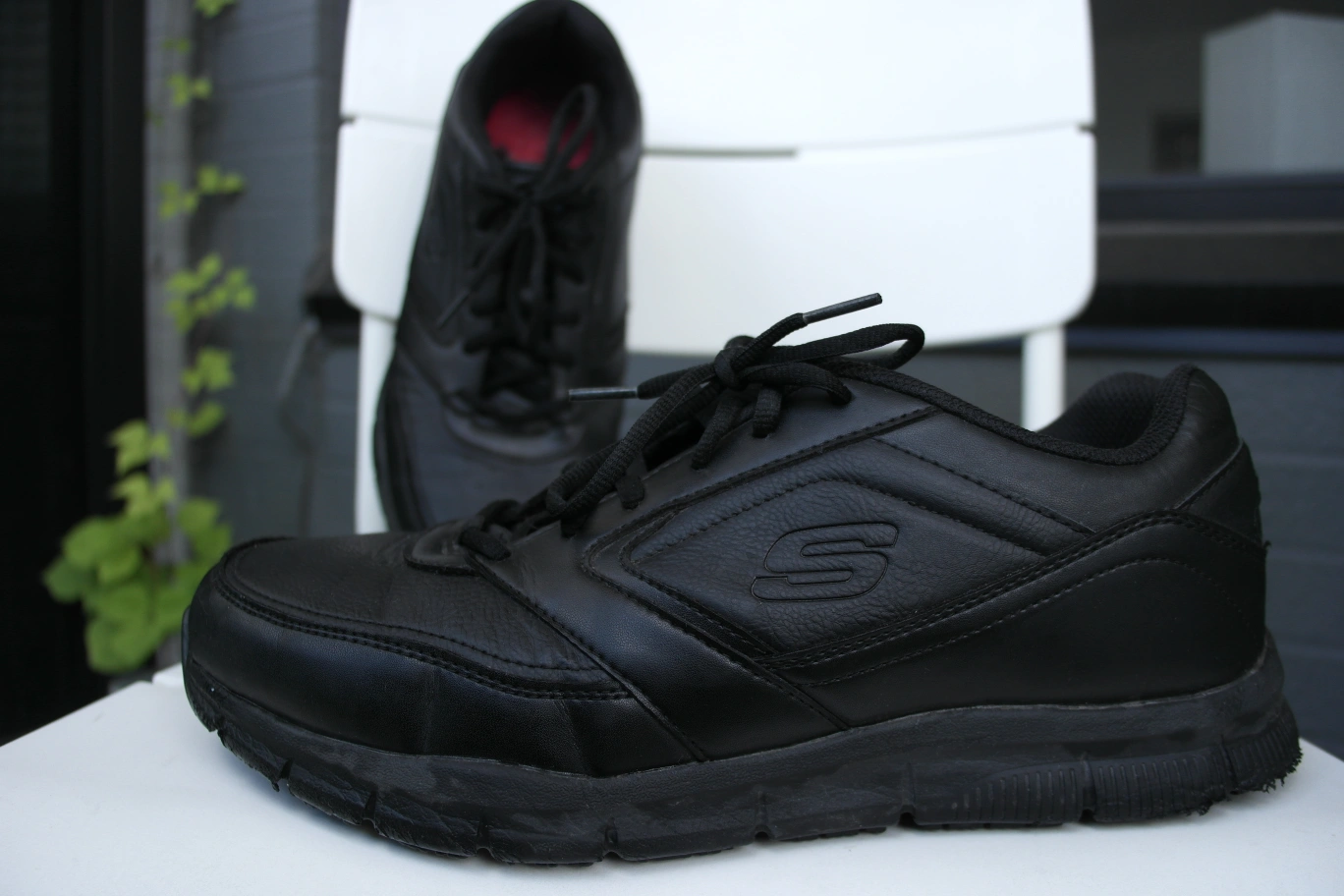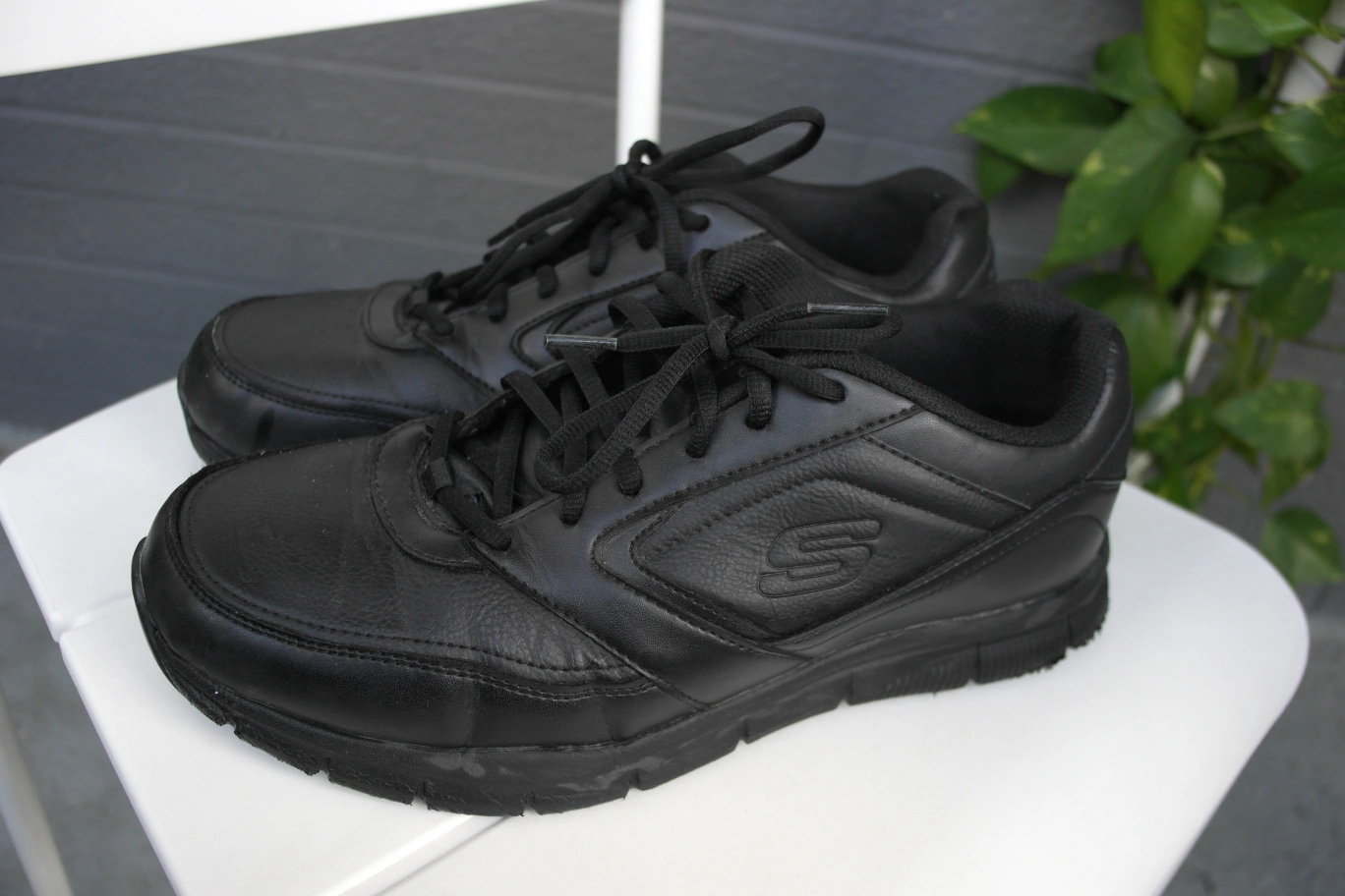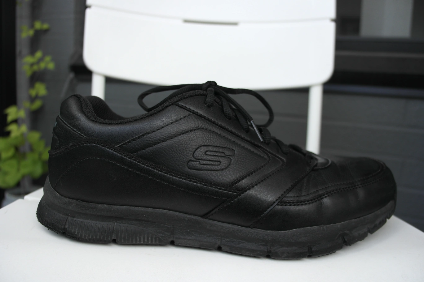 just worn once almost BRAND NEW! Black work shoes. Lace-up closure. Interior in black and red. Rubber soles. These shoes are perfect for work. with slip resistant bottom you can work in any environment with Great grip! size is US 11 , UK 10, EU 45, CM 29 Great Deal!