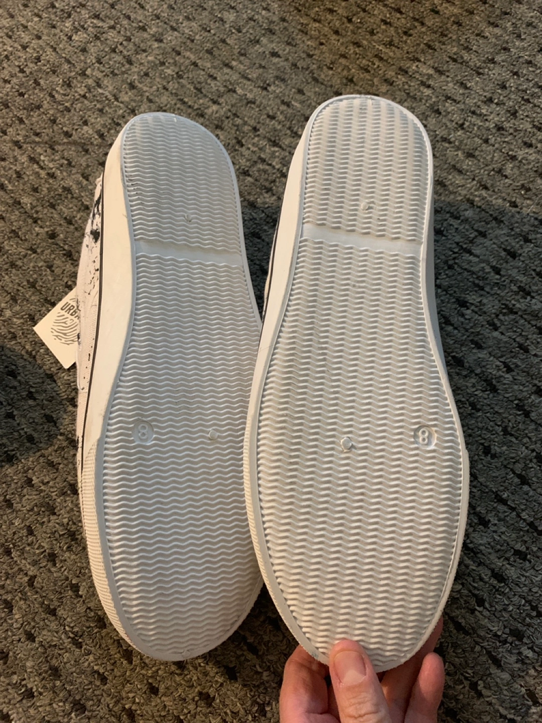Canvas slip-on sneakers. Feature a Rugrats cartoon design. White with colourful design. Pair includes a Rugrats character on each shoe. Hand painted and sealed. Putting these on your feet can transform your entire day. Selling various customized shoes thst I have discounted Size 8 men’s Shoes new are $20 Asking only thirty.