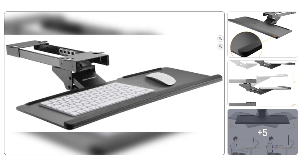 Upgrade your workstation with this deluxe under-desk keyboard tray by PrimeCables. Designed to improve posture and maximize desk space, it features smooth rolling rails, adjustable tilt/height, and a spacious 26.4-inch platform. Built-in gel wrist pads offer long-lasting comfort during typing. Perfect for ergonomic office setups or home workstations. Key Features: Platform Size: 670mm wide x 255mm deep (26.4" x 10") Track Length: 463mm (18.2") – fits most standard desks Adjustability: Height adjustment up to 6.7 inches Tilt ranges from -15° to +15° Swivel range ±20° Material: Steel arm frame + heavy-duty platform Wrist Support: Soft gel wrist pads for typing comfort Mount Type: Under-desk track-mounted sliding drawer Compatibility: Works with most keyboards and mice (fits full-size keyboard + mouse side-by-side) Ergonomic Benefits: Encourages a neutral typing posture (elbows at 90°) to reduce neck and shoulder strain Special Offer: Get an additional $2 discount for each additional item purchased from my listing. For example, buy 2 items, get $2 off; buy 3 items, get $4 off, and so on! Shipping Fee: +$10 shipping fee (Canada Post)