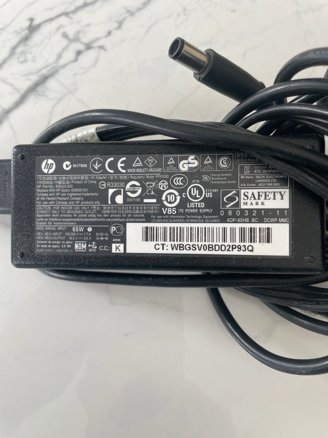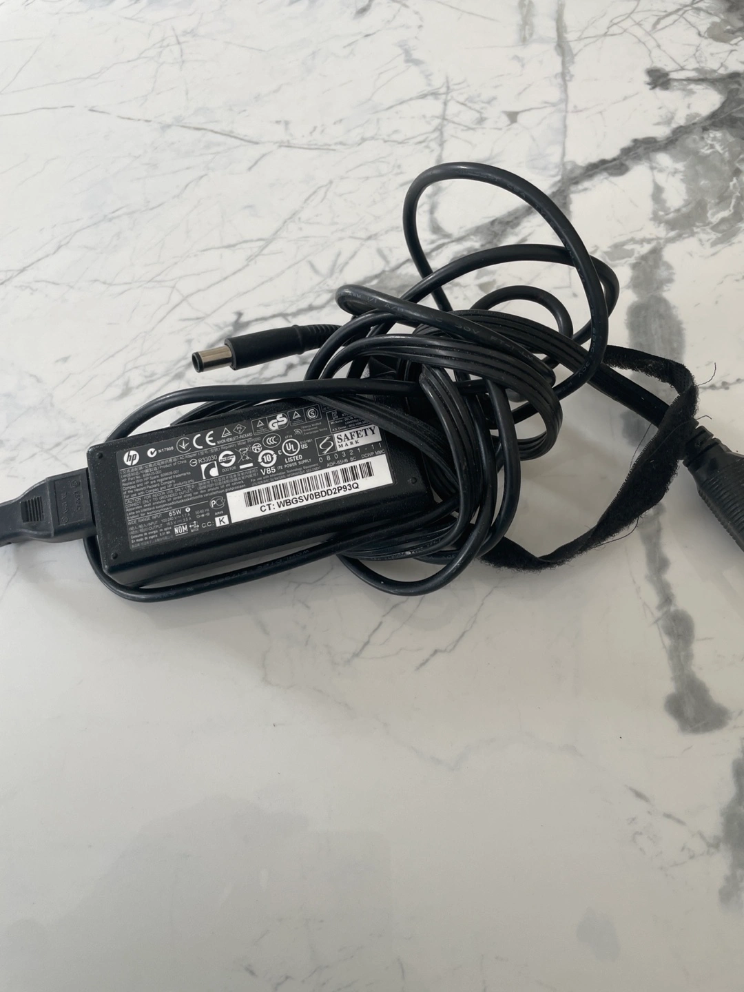 Black coloured power adapter with a long black cable. Perfect for charging your device at home, helping you unwind after a long day. Output 65w