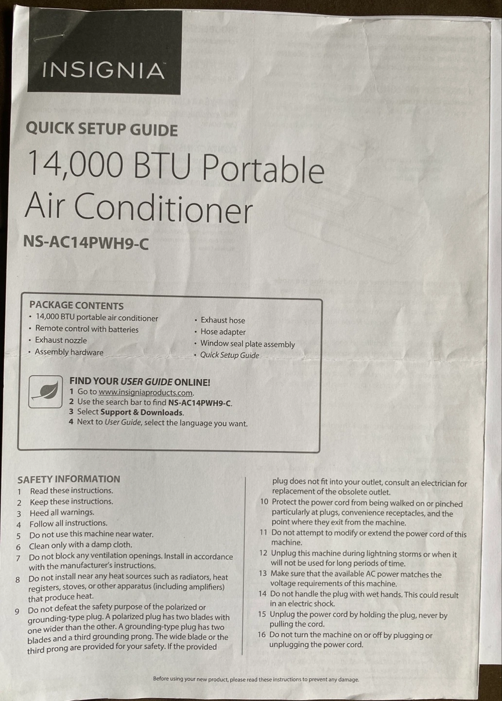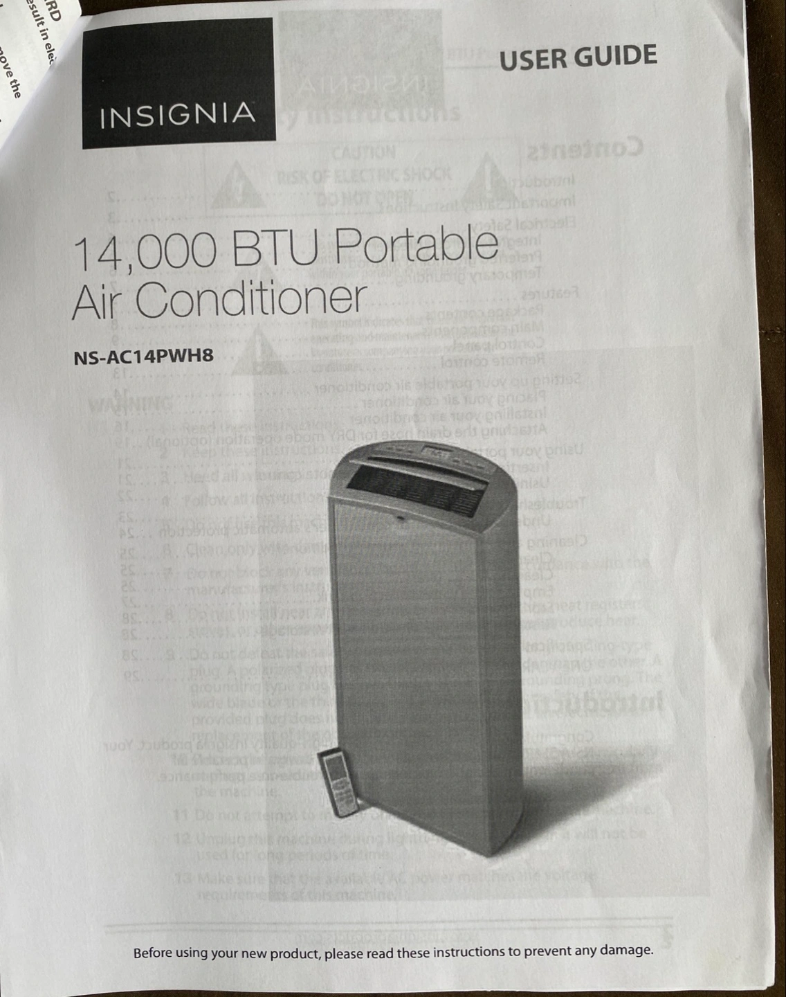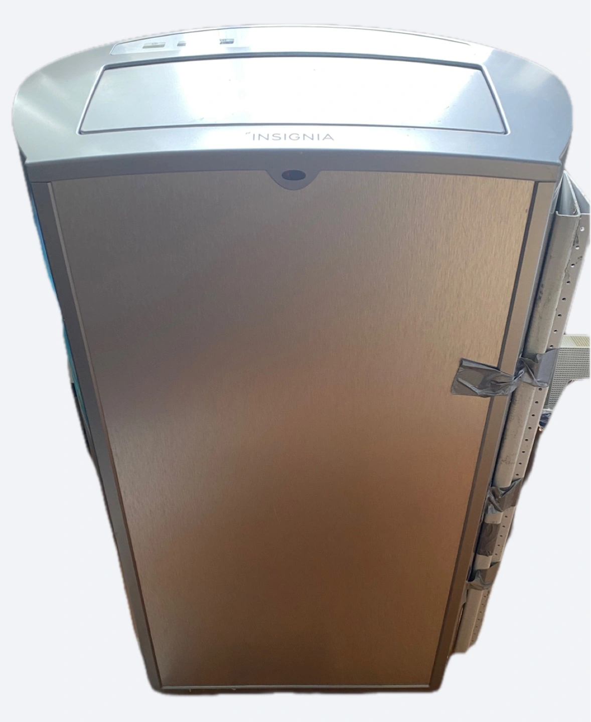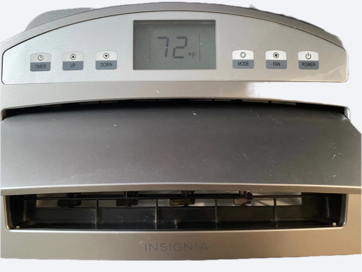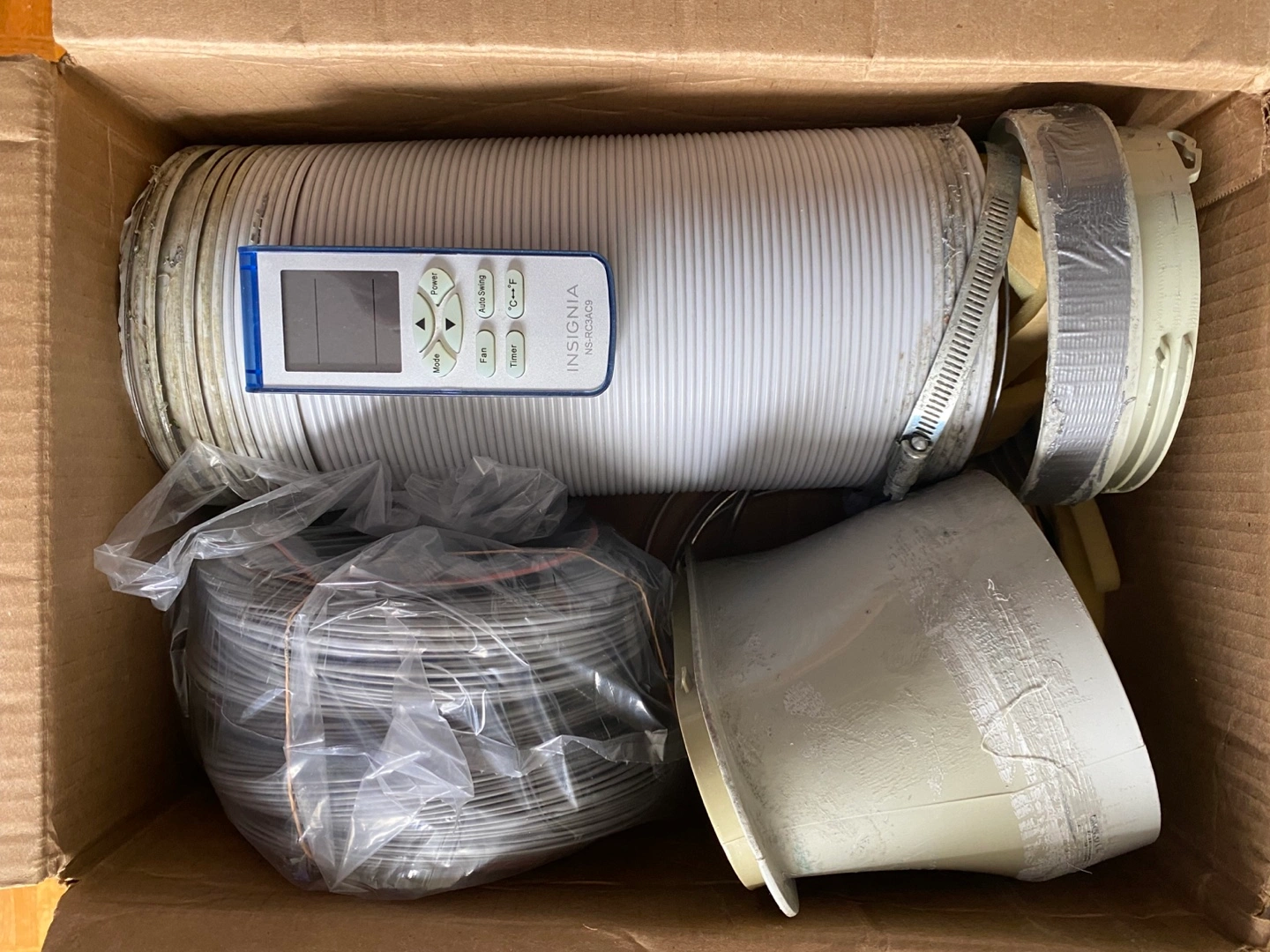 The air conditioner has a grey finish. There are multiple buttons on the top, including power and mode. A remote control, exhaust hose, and other accessories are included. It would be perfect for creating a peaceful environment during those hot summer months. Used for three summers great for apartment or house. Moving sale.