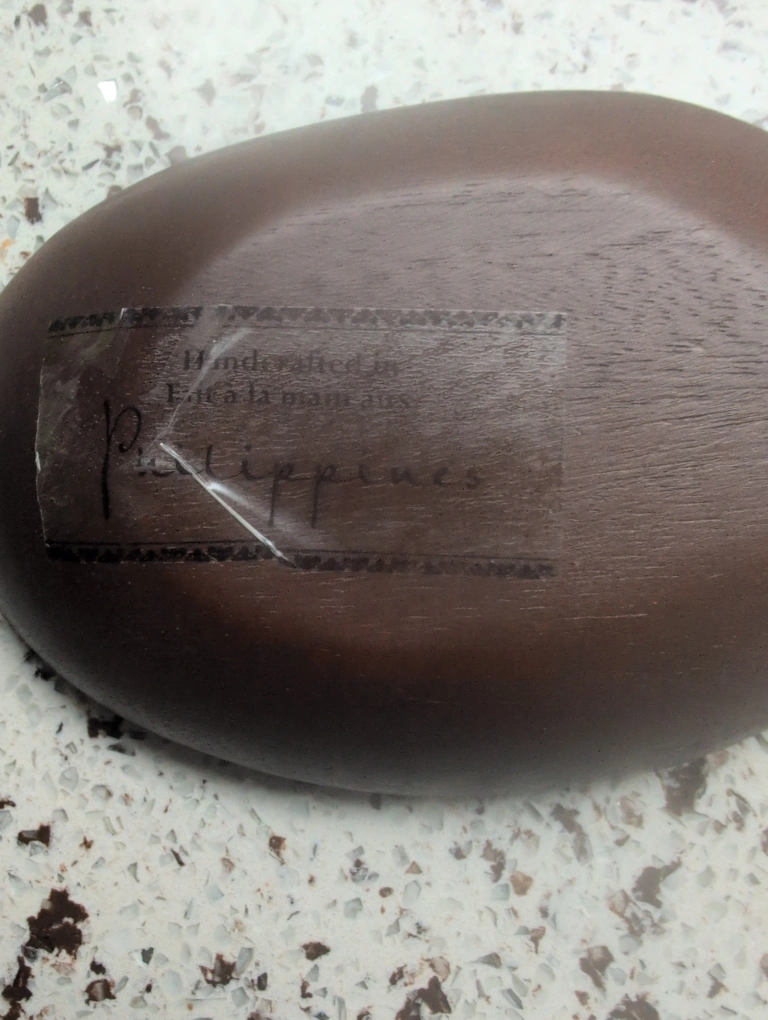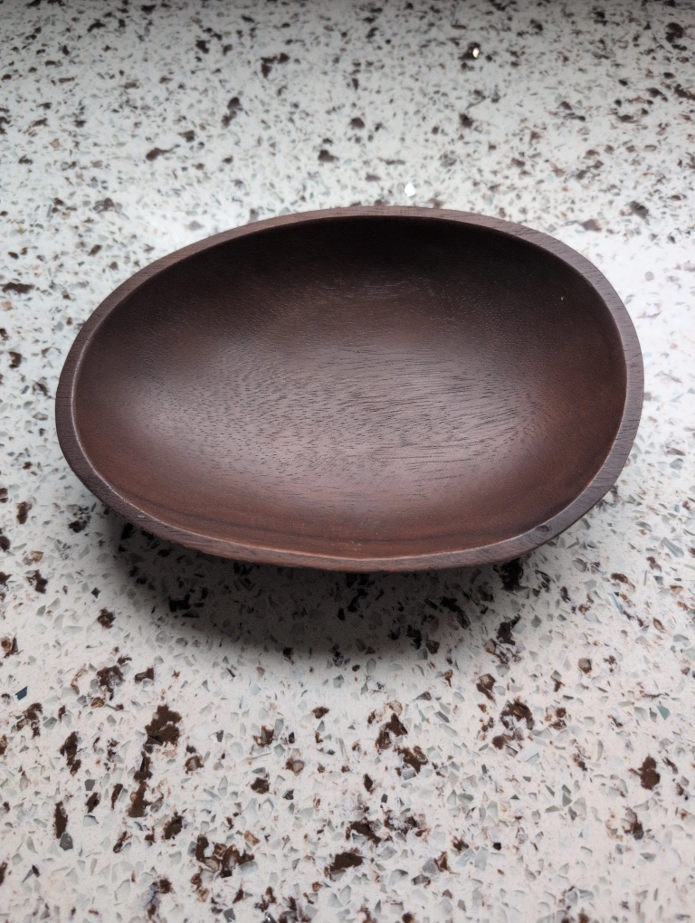 A small oval bow, 18x12 cml. Made of dark wood. The bowl is handcrafted.