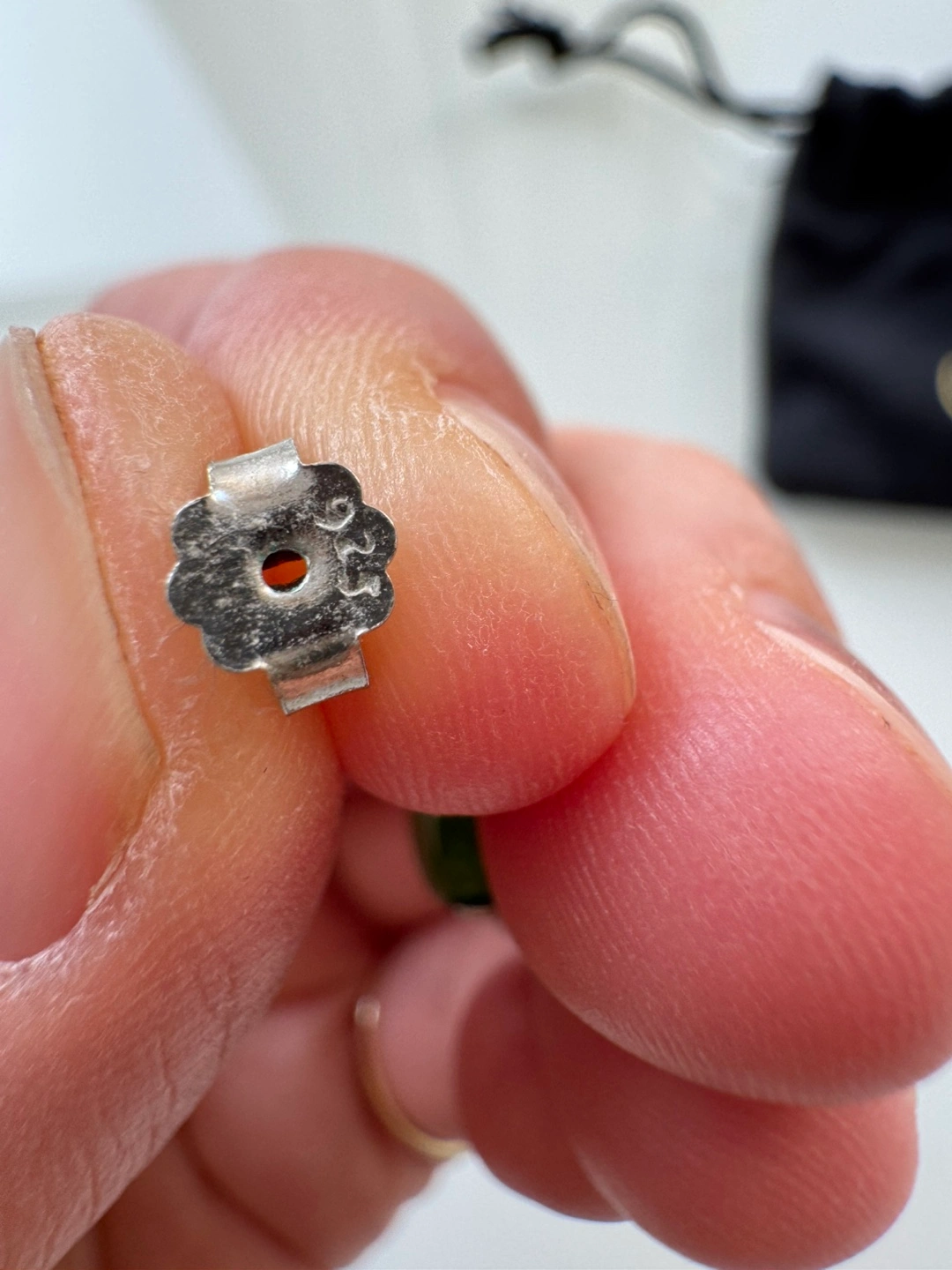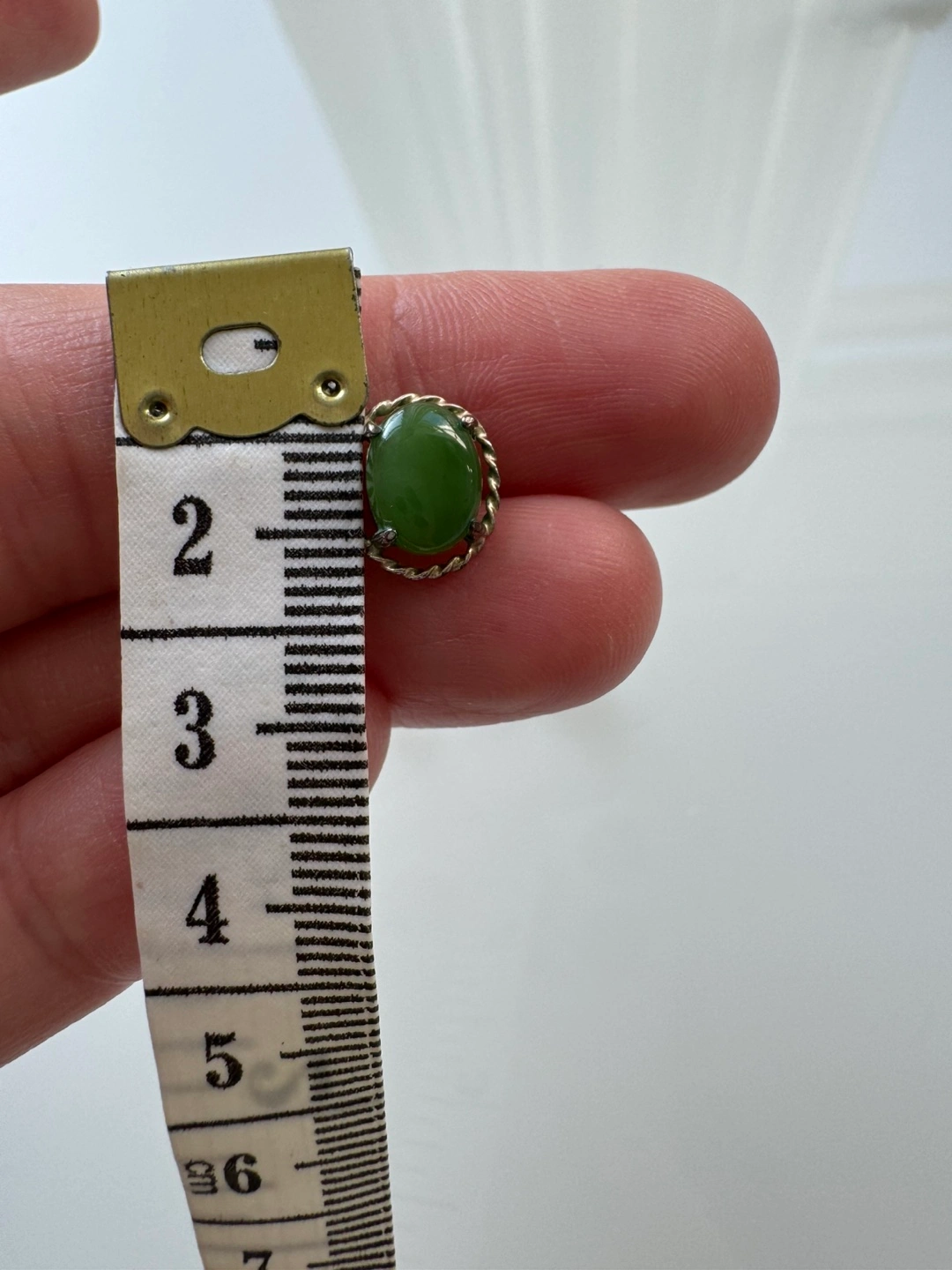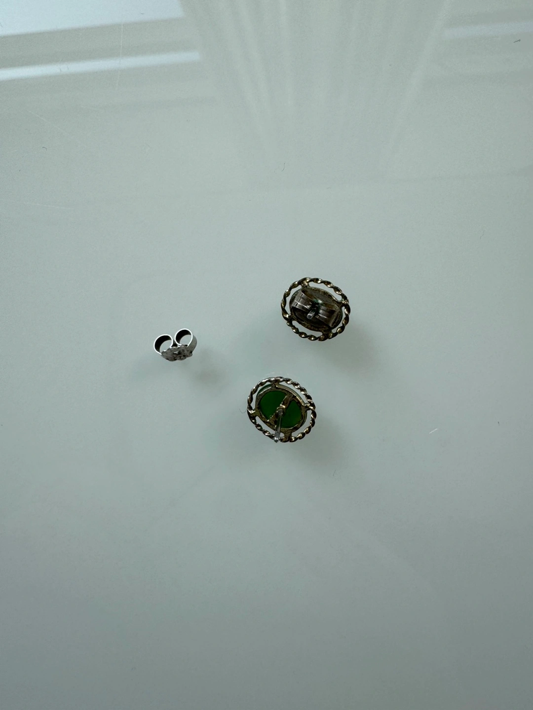 A pair of earrings with Canadian Jade. Gold plated outer rim and sterling silver. Comes with the original box.