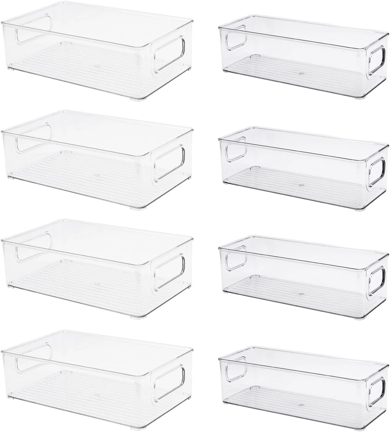 Rectangular organizer bins. Made of clear plastic. Features two handles. Great for decluttering and organizing any space. Retail Price + Tax = $47.46/bin List price is per bin Meet/Pick-up Keele & Eglinton CASH ONLY 100.000.039