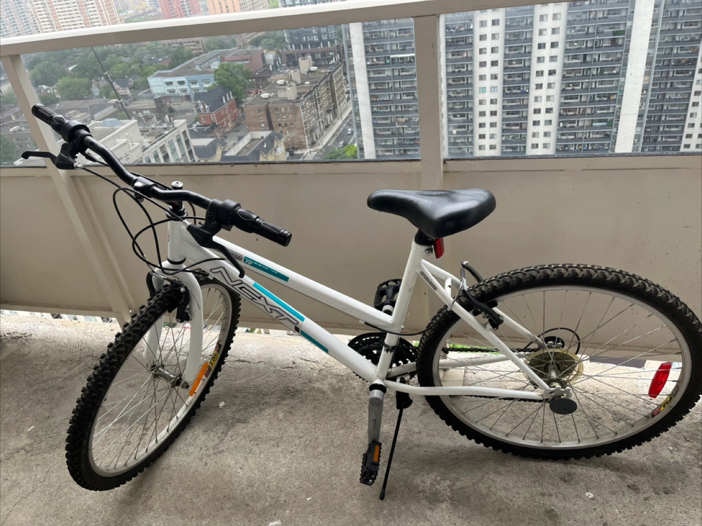 In a very good condition. 26-inch tire. Gears and breaks work perfectly. Features front and rear tires, as well as a kickstand. Great for leisurely rides around the neighbourhood. Got this bike from my friend but I don’t use it so selling to someone who can make use of it:) Price is firm & cash only. Pick up at 240 Wellesley St E. Lmk if you have any questions:))