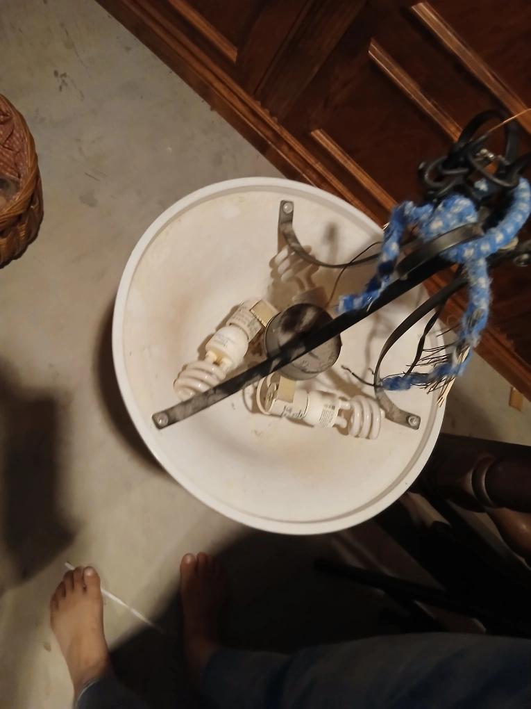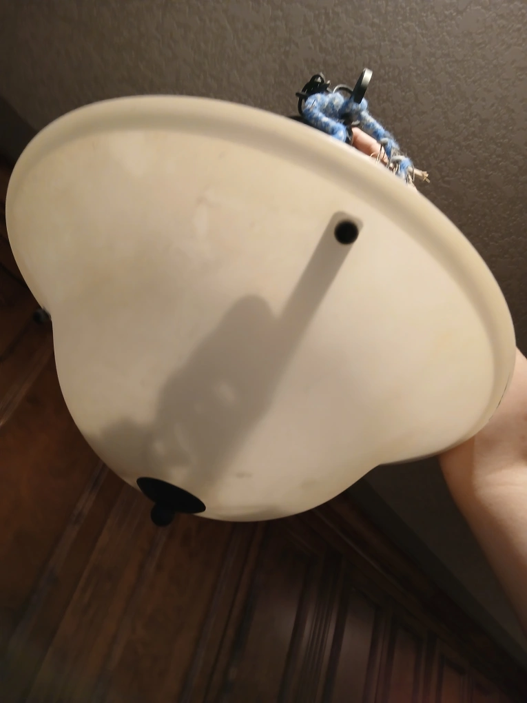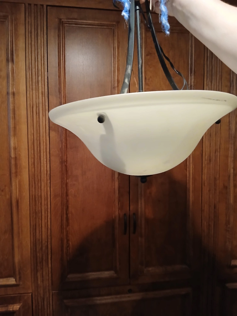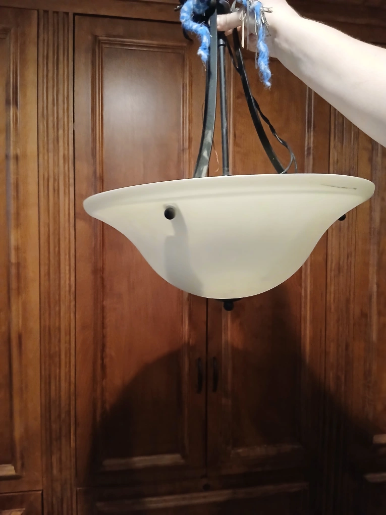 Here's a ceiling lamp fixture, perfect for your kitchen. It features a round white shade. A nice way to add a warm glow to a room.