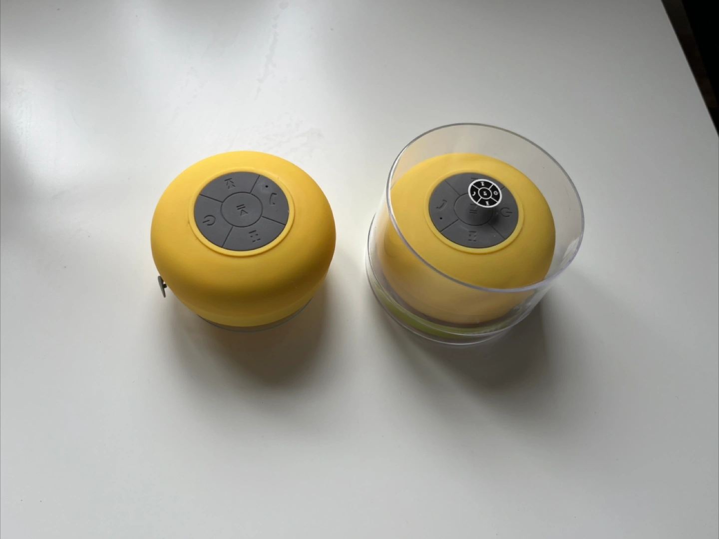 Here is a bright yellow wireless speaker. The speaker is round with buttons for control. Waterproof, Stick-on. Not open in original package. Pickup at/around Bathurst and Centre in Vaughan. Cash only. May limited time in downtown Toronto.