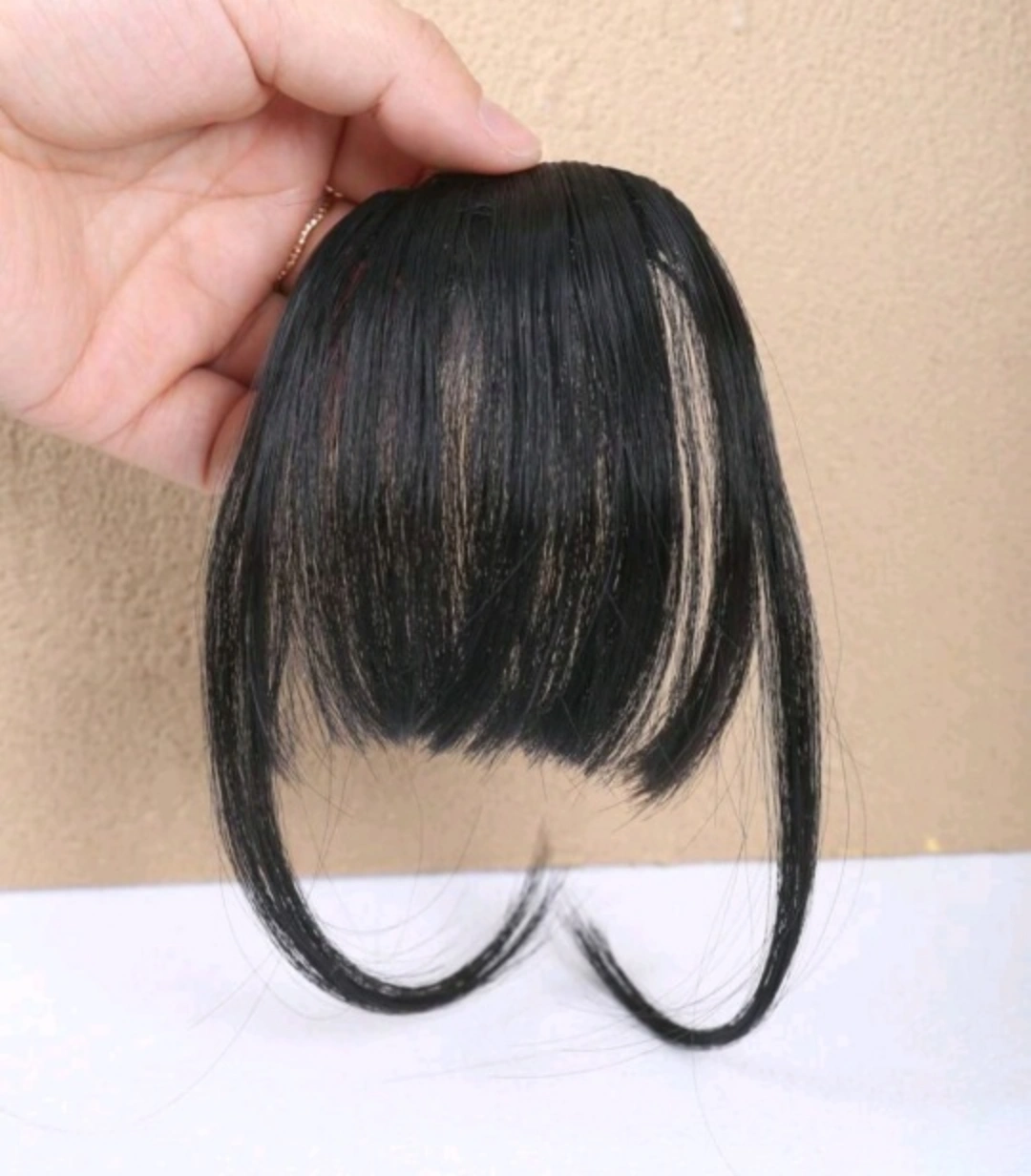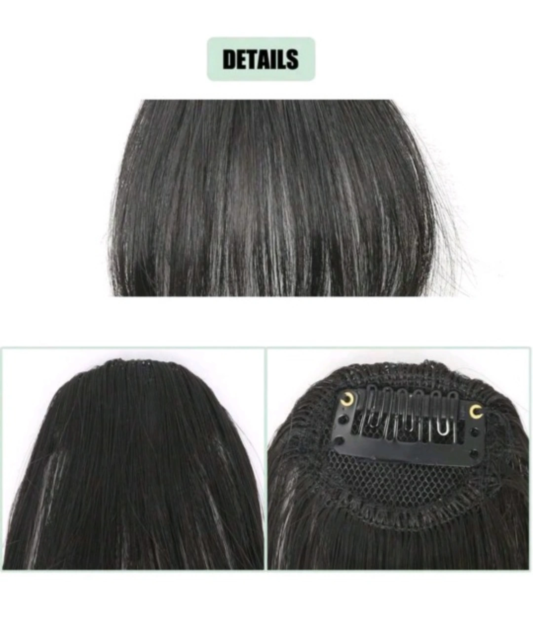 Selling a black clip-in bangs hair extension! It's a quick and easy way to change up your look without committing to a haircut. Perfect for experimenting with bangs or adding volume to your existing fringe