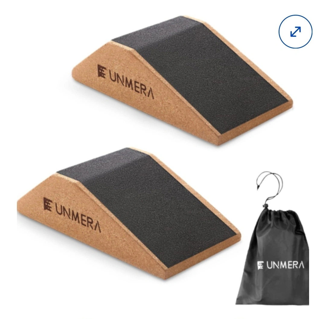 These UNMERA squat wedges are great for strength training and improving body flexibility! They help protect the spine and knees from injury. The dimensions are approximately 9.05 inches long, 1.57 inches wide, and 4.72 inches high.