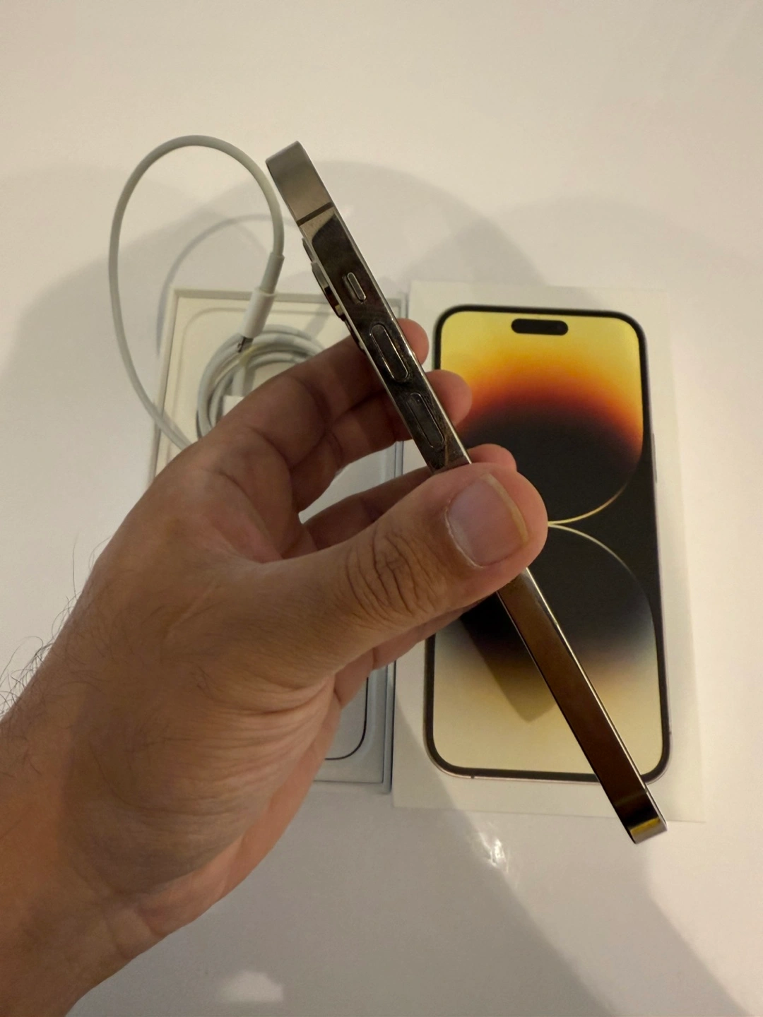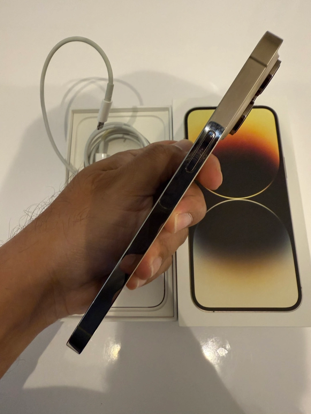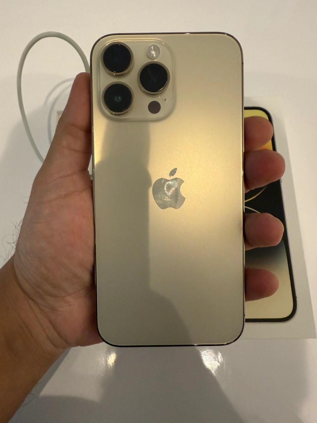 I have a gold iPhone 14 Pro Max up for sale, factory unlocked. The memory on it is 128GB. Asking $750 firm. You can call, text or email me with any further questions, name’s Nabeel, cell number 9055983705. Thanks for looking.