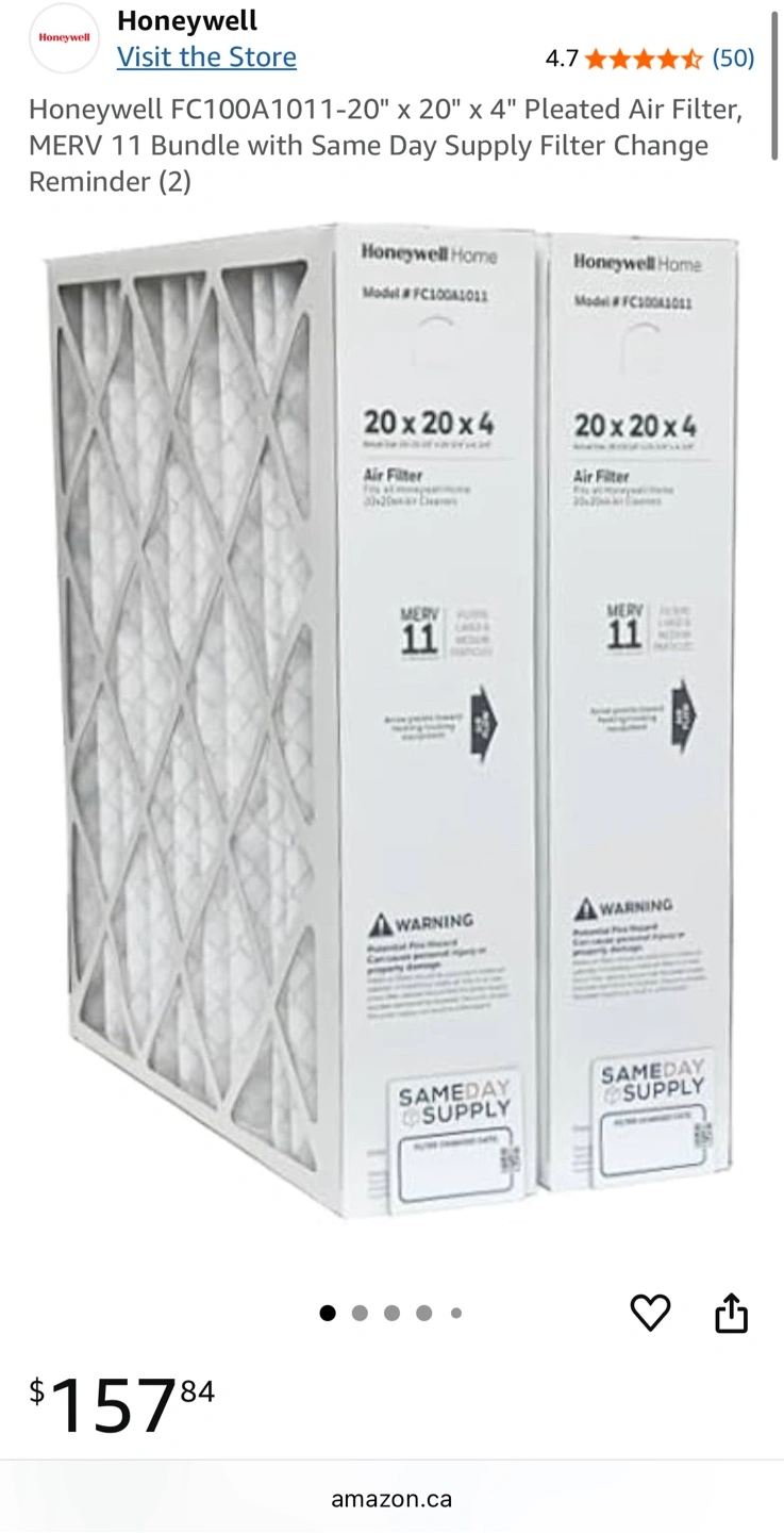 ✨NEW✨MERV 11✨ *** Retail for over $100+tx*** Selling 2 brand new Honeywell Home air filters, size 20x20x4. It's a pleated filter with a MERV 11 rating. Perfect for improving your home's air quality! *** Price is for 2 filters *** ✨Moving sale✨ ✨Need it gone ASAP✨