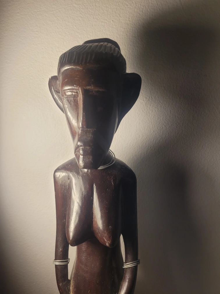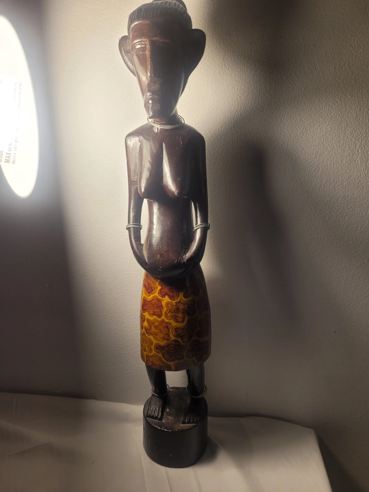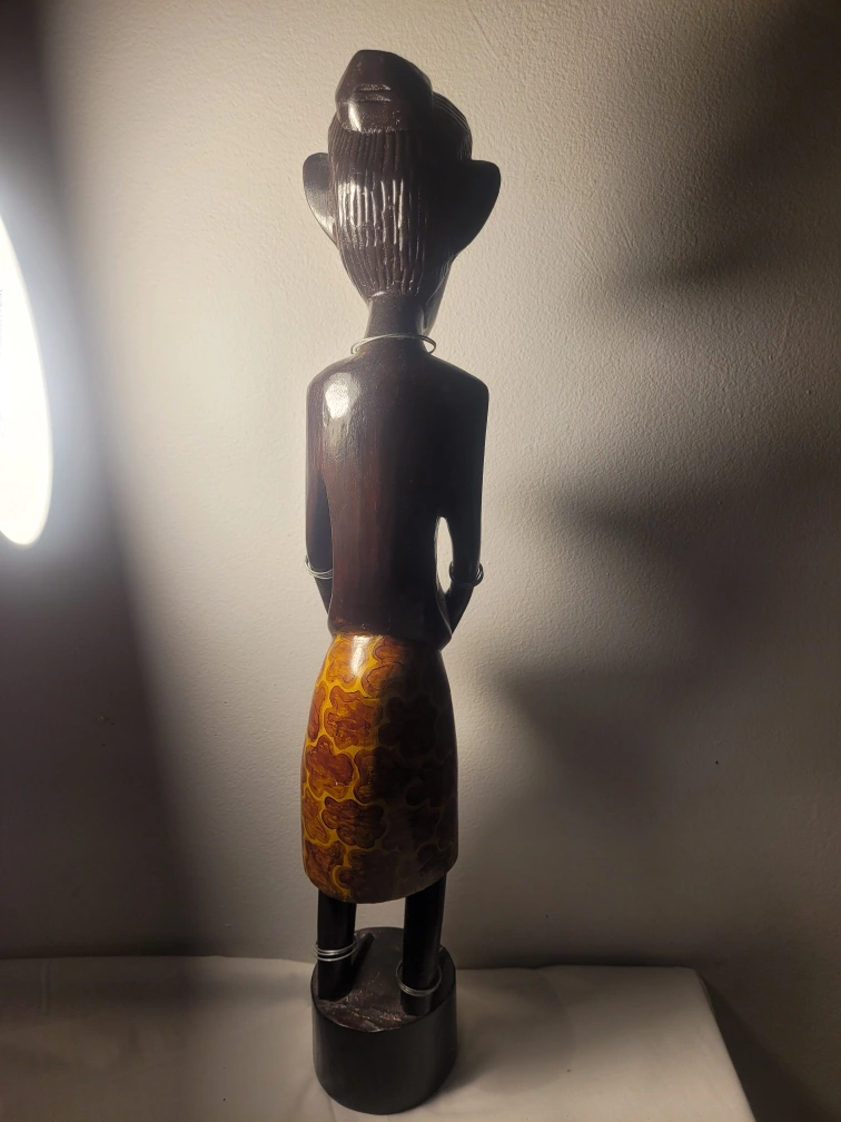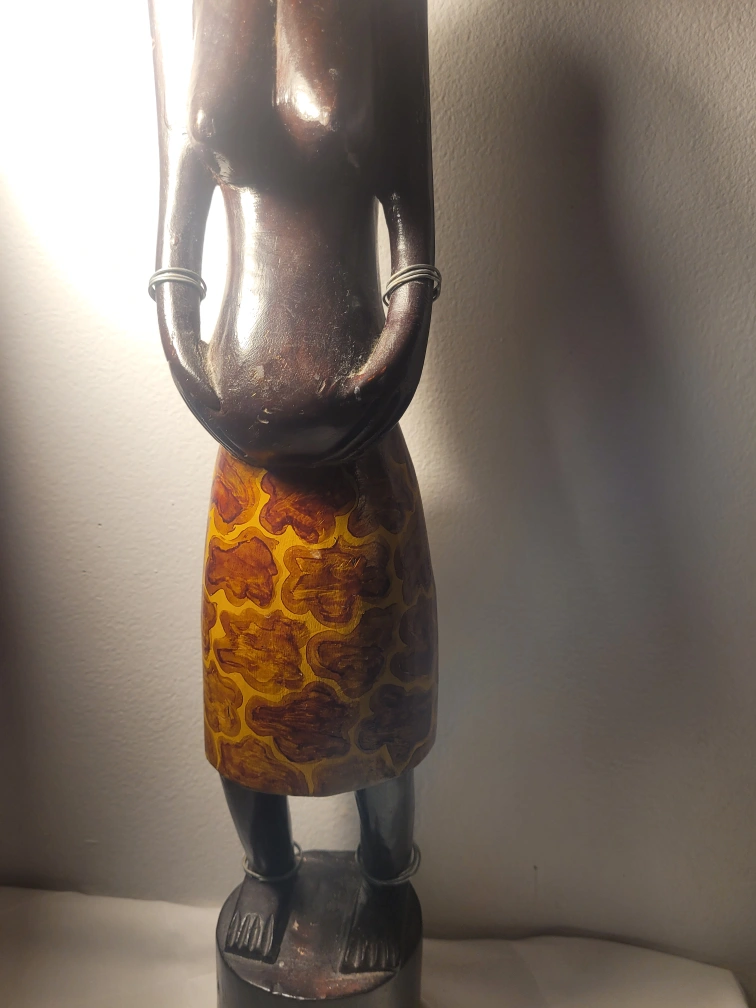 This is a beautiful African wood carving figurine. It has a unique design and would make a great addition to any home