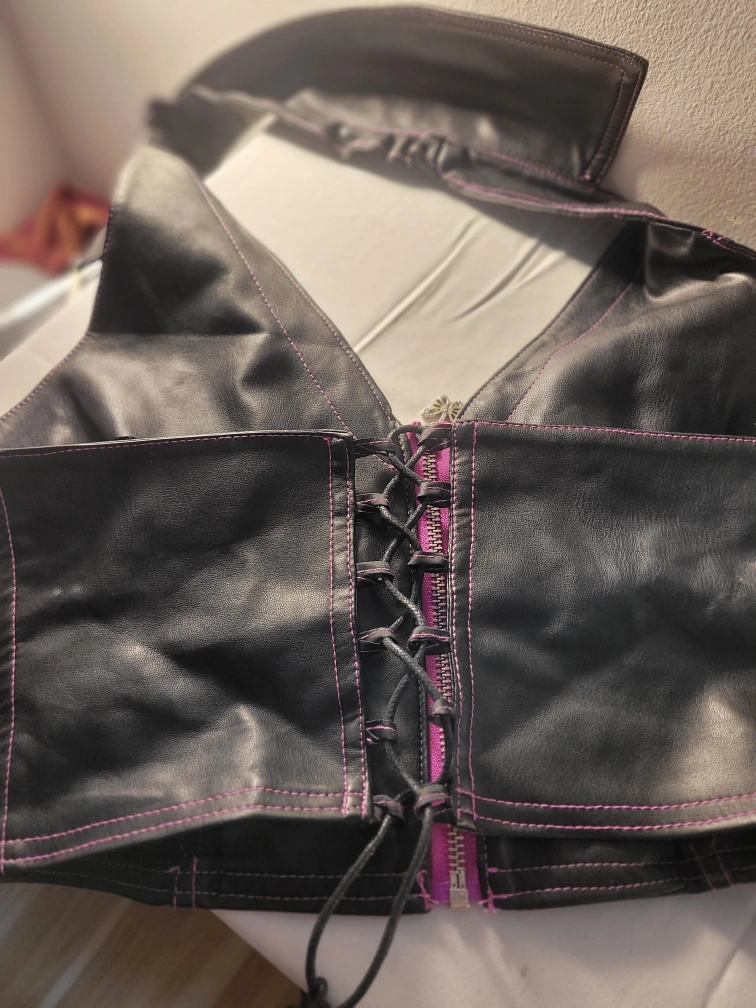 Selling a cute black vegan leather halter top and mini skirt set! The top features a butterfly zipper pull and the skirt has a matching butterfly embroidery. Perfect for a night out!