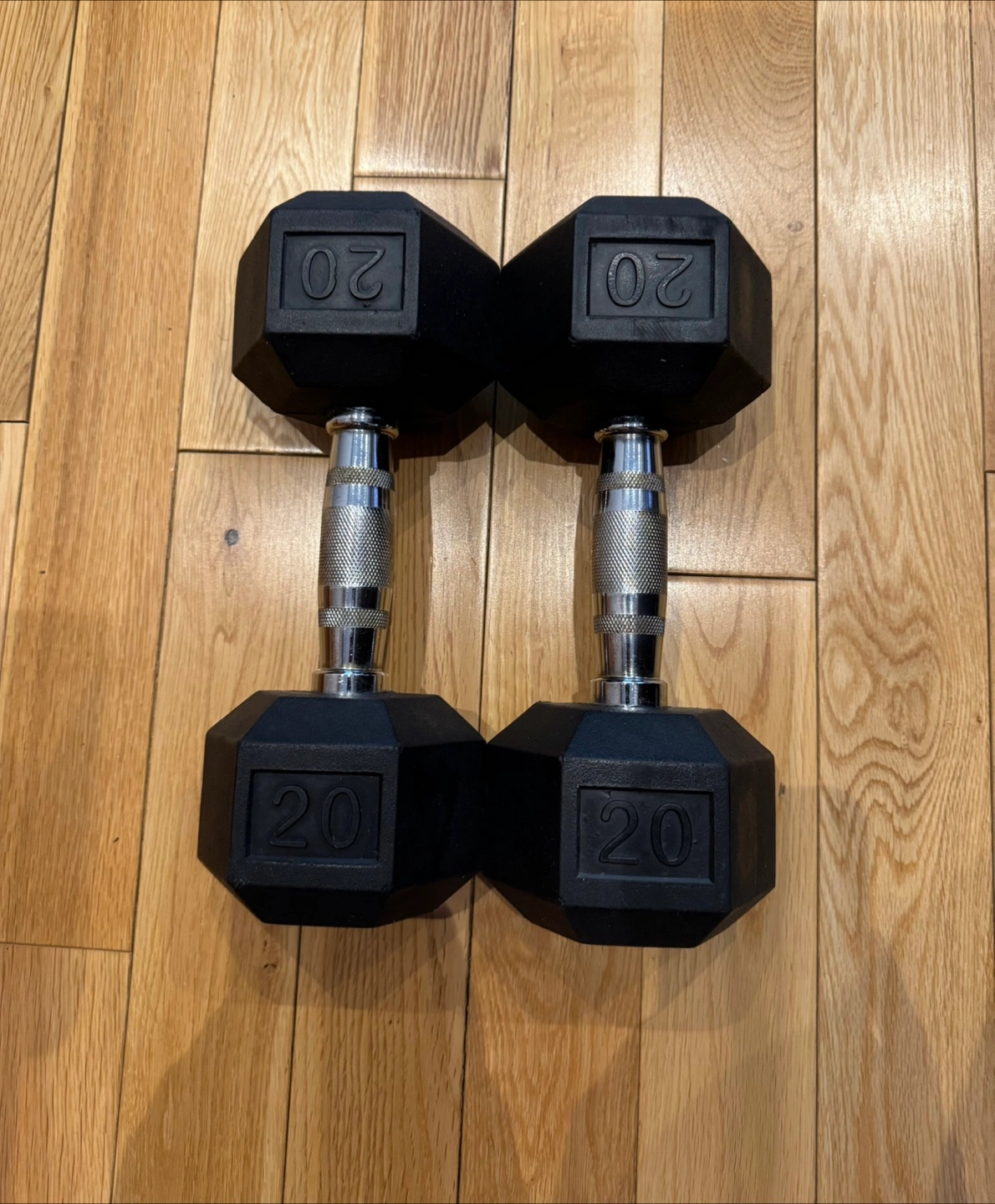 A pair of 20LB dumbbells in GUC. Disclosure: one dumbbell has a small crack, see second picture. Does not affect function. Pickup Gerrard/Main