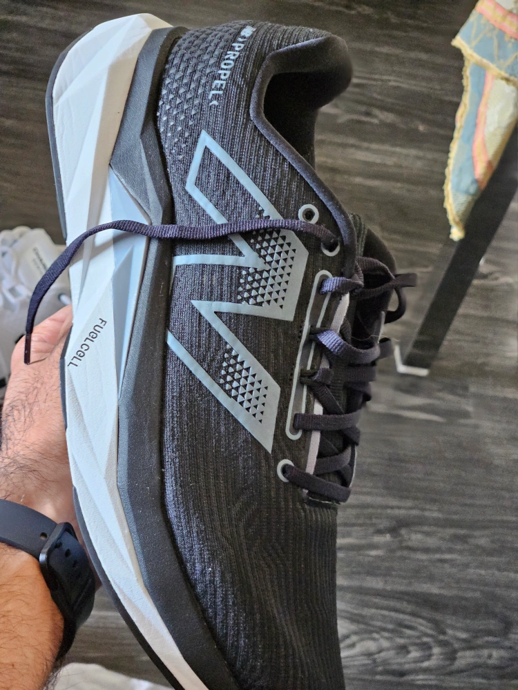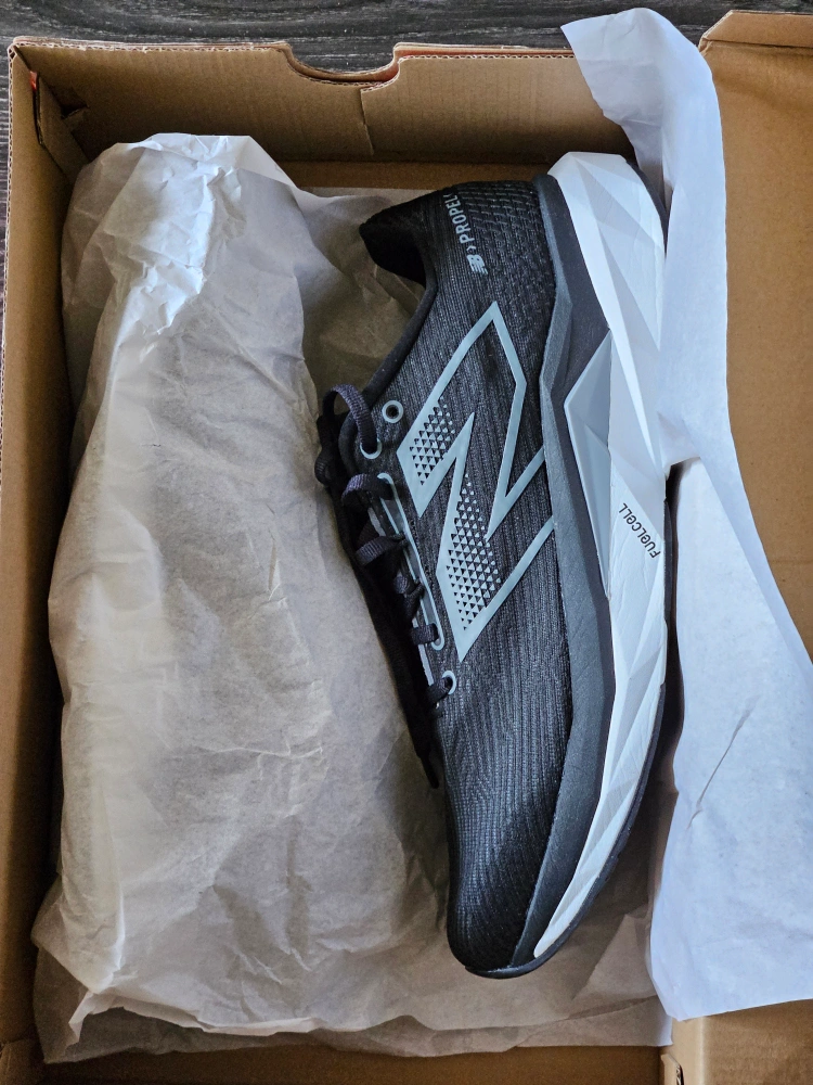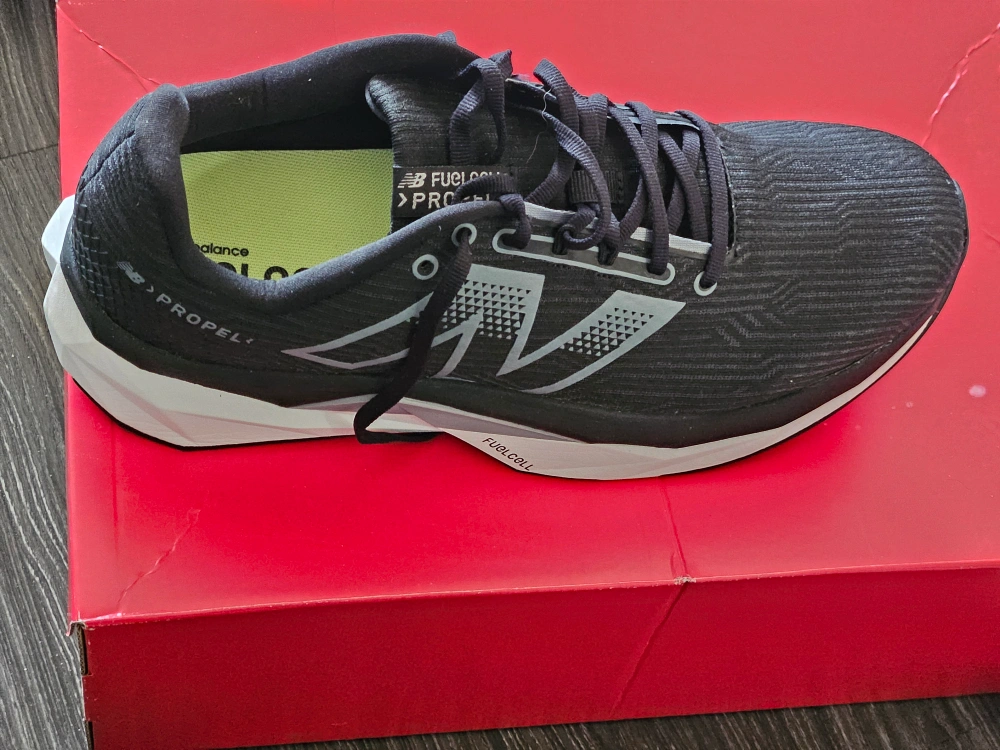 Selling a pair of New Balance FuelCell Propel v5 running shoes in black, white, and steel! They're new and come with the original box. The size is a men's US 11.
