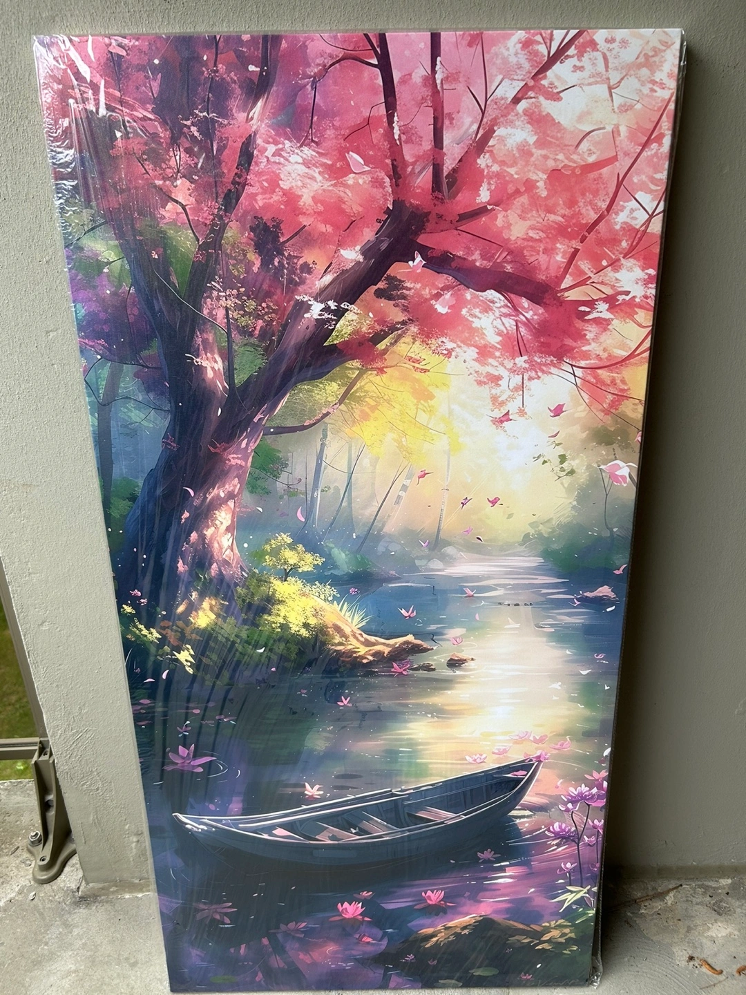 Canoe Water Serene Nature Canvas Wall Art (24”W x 48”H)
