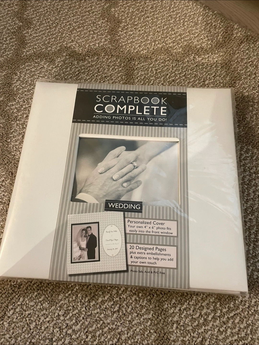Brand new Scrapbook Complete wedding album! It's the perfect way to keep your wedding memories safe. - Personalized cover: Fits your own 4" x 6" photo easily into the front window - 20 designed pages plus extra embellishments and captions to help you add your own touch - Photo safe, acid & PVC free