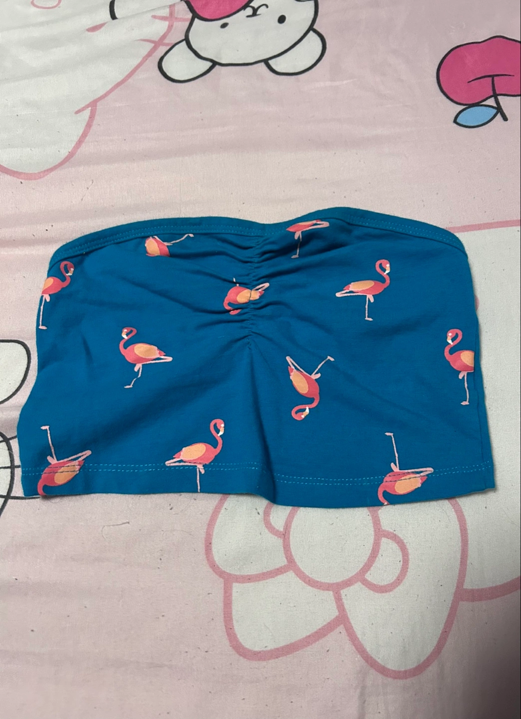 Cute blue tube top with a fun flamingo print! Great for summer