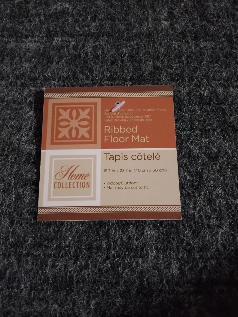 Selling home Collection ribbed floor mats. They're dark grey or black. Each mat measures 15.7 in x 23.7 in (40 cm x 60 cm). They can be used indoors or outdoors and may be cut to fit your space. They are brand new. $3 each. 7 grey and 8 black