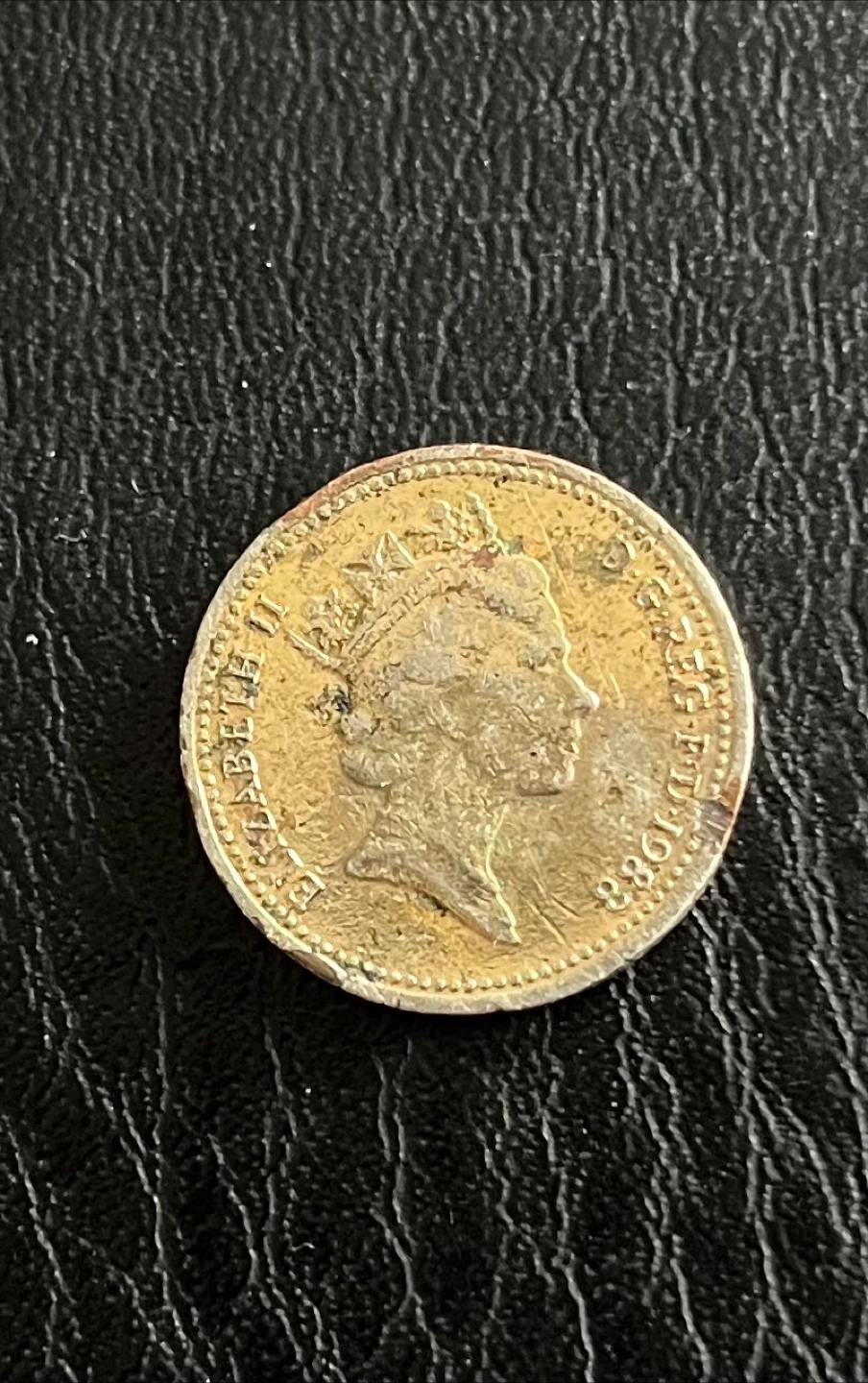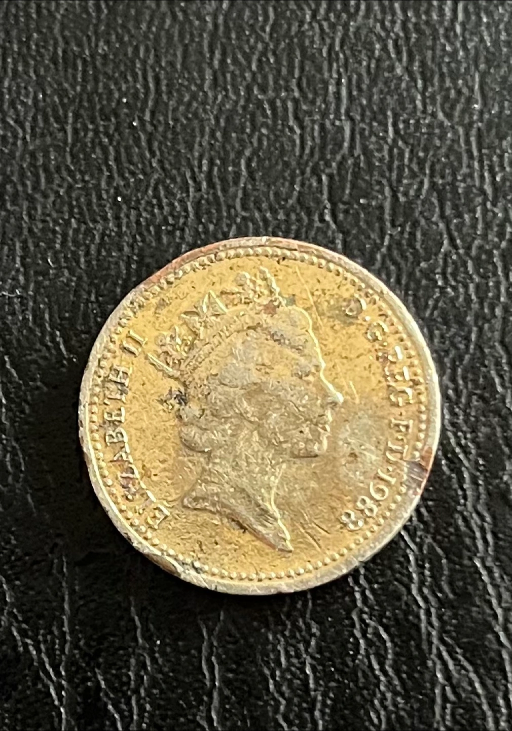 Selling a 1988 one penny coin. It has some wear and tear, as you can see in the photos.