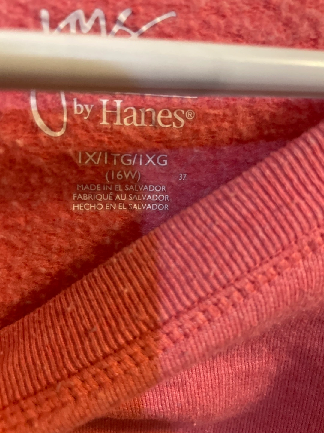Cozy pink Hanes pullover in size 1X (16W). It's in great shape and ready for a new home!