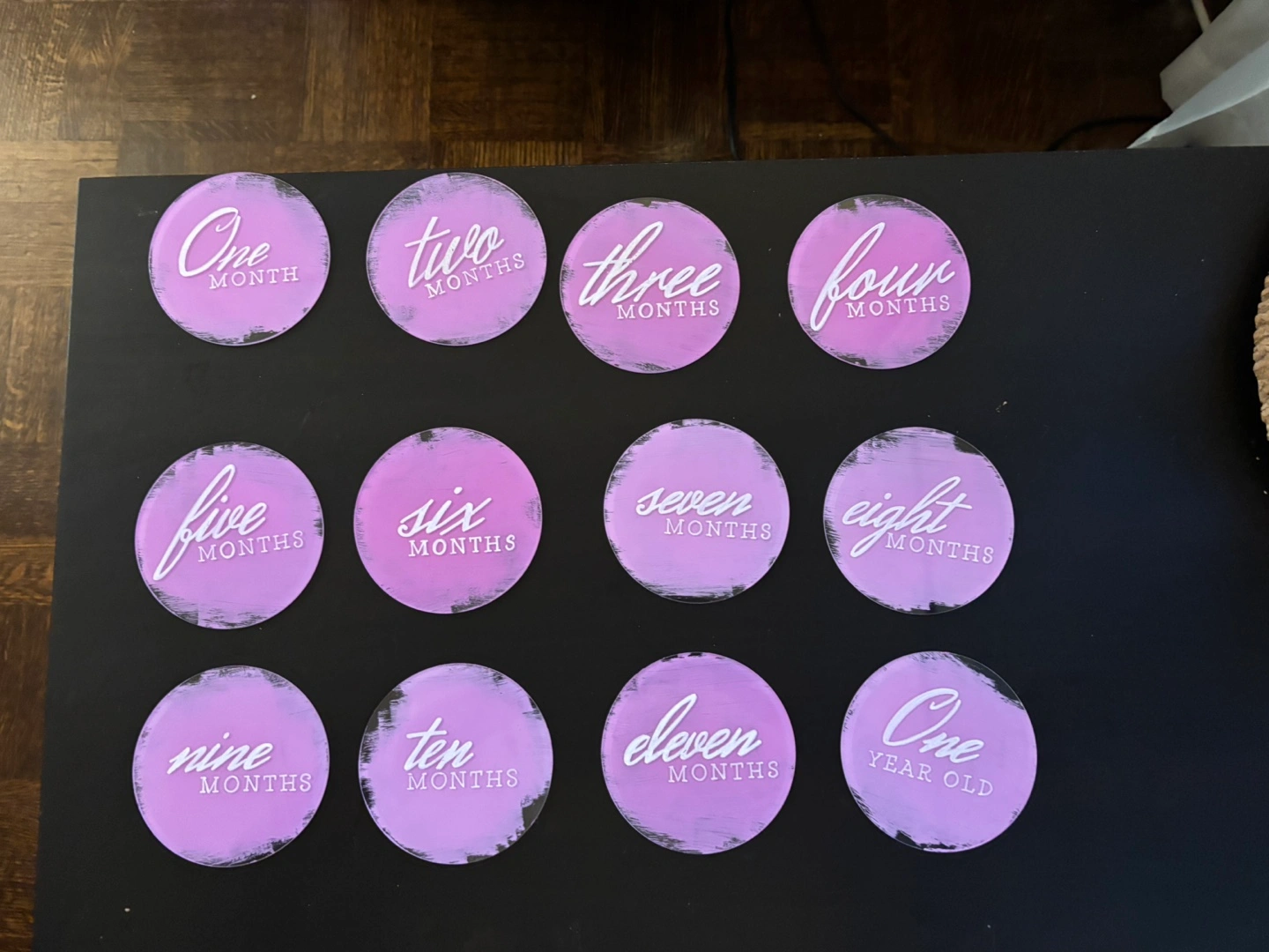 These adorable baby milestone discs are perfect for capturing your little one's growth from one month to one year old! It was a gift but I don’t need them Smoke, pet free home Cash only. Pick up: Tyndall Avenue and Thorburn Avenue