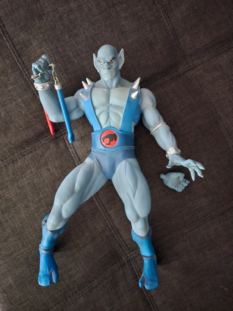 Thundercats Panthro by Mezco. 14" Mega-Scale Figure. Includes alternate hand and Nunchucks accessories. Made of ABS plastic/vinyl material. Released in 2012, it is part of the classic Thundercats TV show. Located King St W & Dufferin St. Please see my other listings.