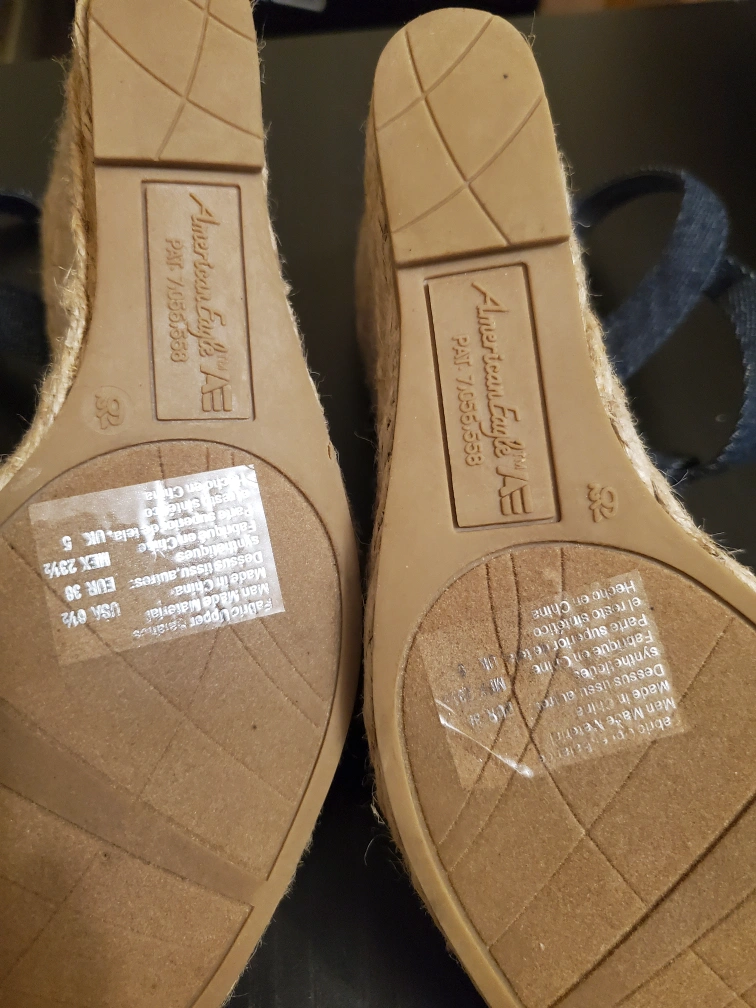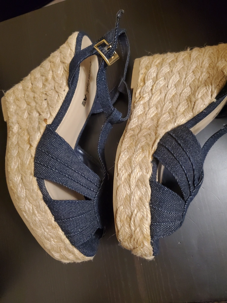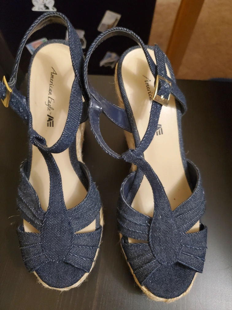 These American Eagle wedge sandals are a stylish addition to any wardrobe! They feature a denim upper and a comfortable wedge heel. The size is US 6 1/2 Perfect for a casual summer look!