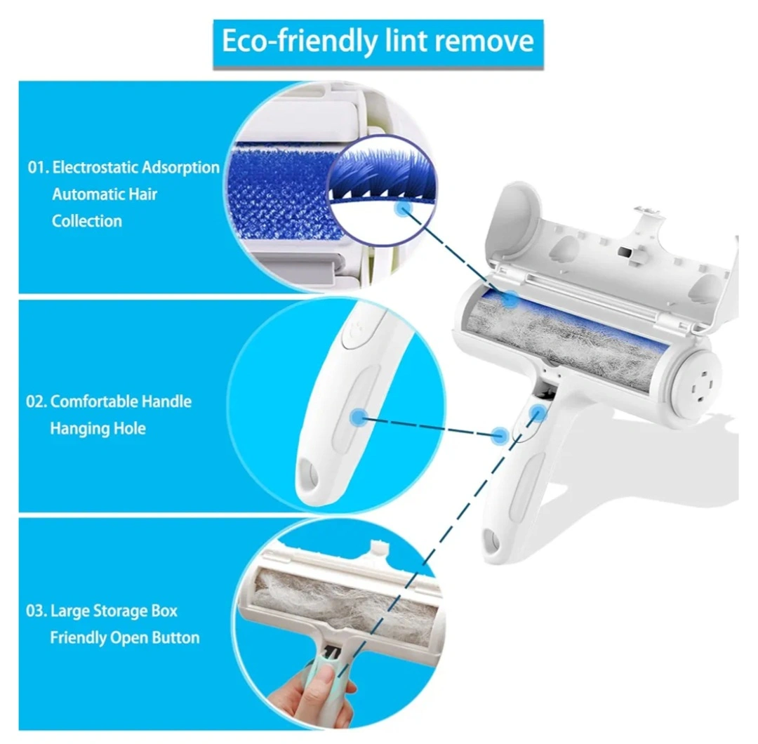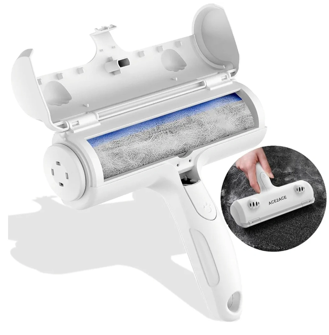 Keep your home fur-free with this ACE2ACE pet hair removal brush! It's designed to easily remove pet hair from sofas, carpets, and other surfaces. The brush features electrostatic adsorption for automatic hair collection and a comfortable handle with a hanging hole. The large storage box and friendly open button make it easy to use and clean.