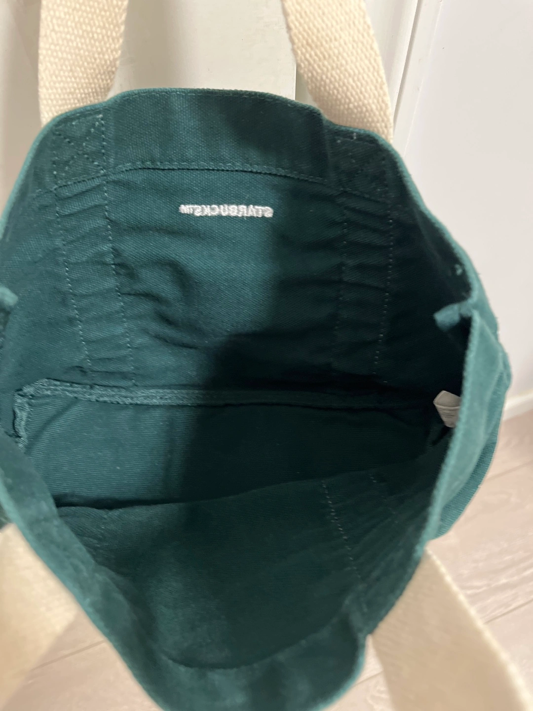 A cute Starbucks tote bag in a lovely green colour! Perfect for carrying your daily essentials or groceries. It's in great condition and ready for a new home