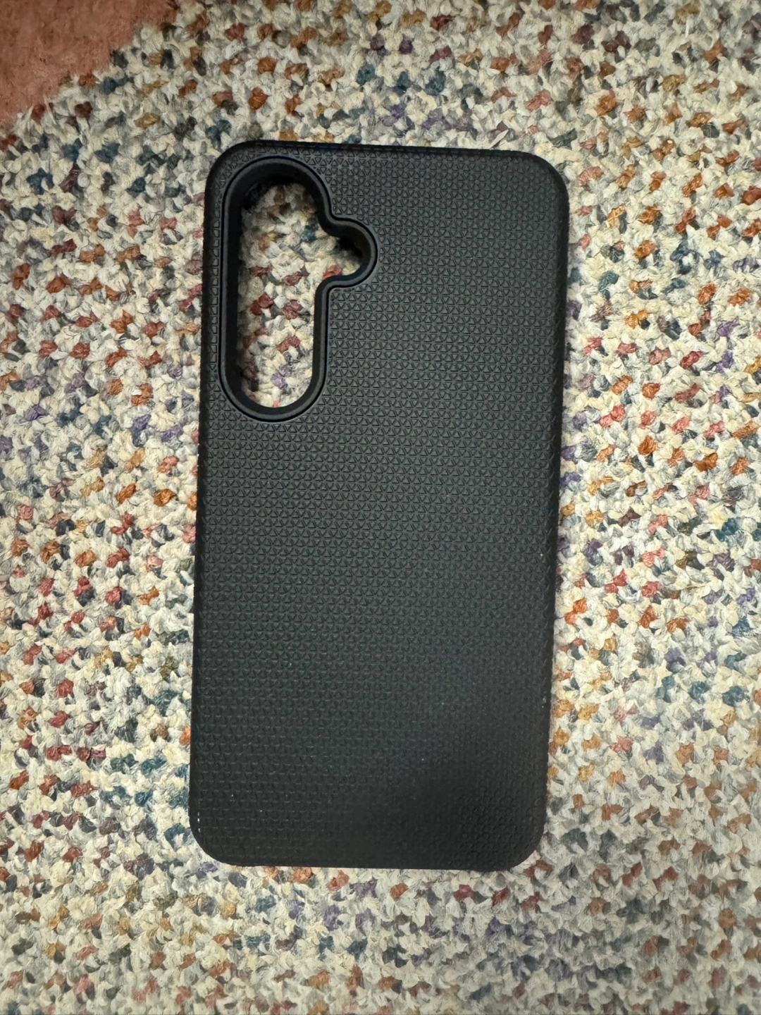 Selling a black phone case in great condition! It has a textured back for a good grip and a cool geometric design on the inside