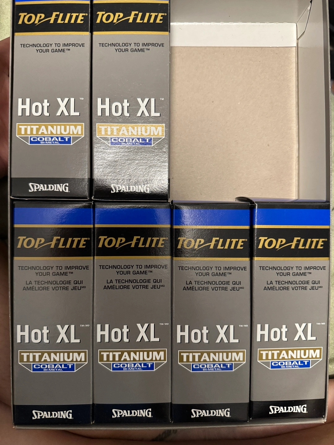 Selling a set of Top-Flite Hot XL Titanium Cobalt golf balls! These are designed with technology to improve your game. Each ball features a titanium cobalt construction for enhanced performance. Perfect for golfers of all skill levels. 18 Golf Balls Total In Box.