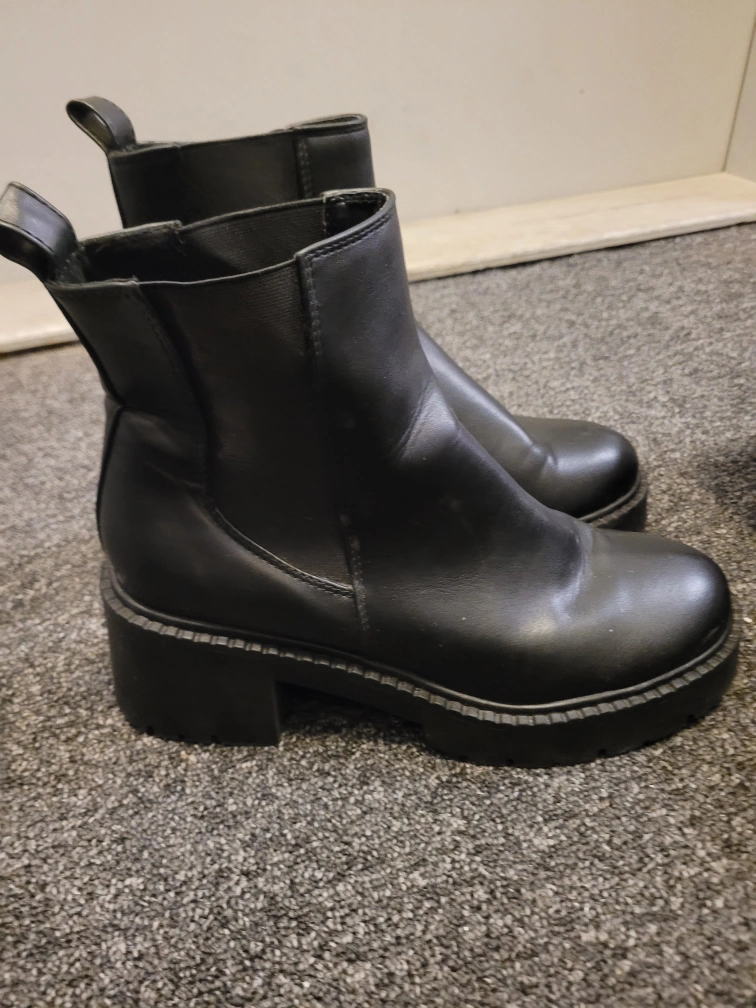 Selling a pair of Steve Madden Trust black boots in size 9M. They have a PU and fabric upper with a man-made outsole. Great for adding a bit of edge to your outfit! **** Pickup Only **** **** Cash Only **** **** No E-transfers **** **** Serious Inquiries Only/ Serious Offers Only ****