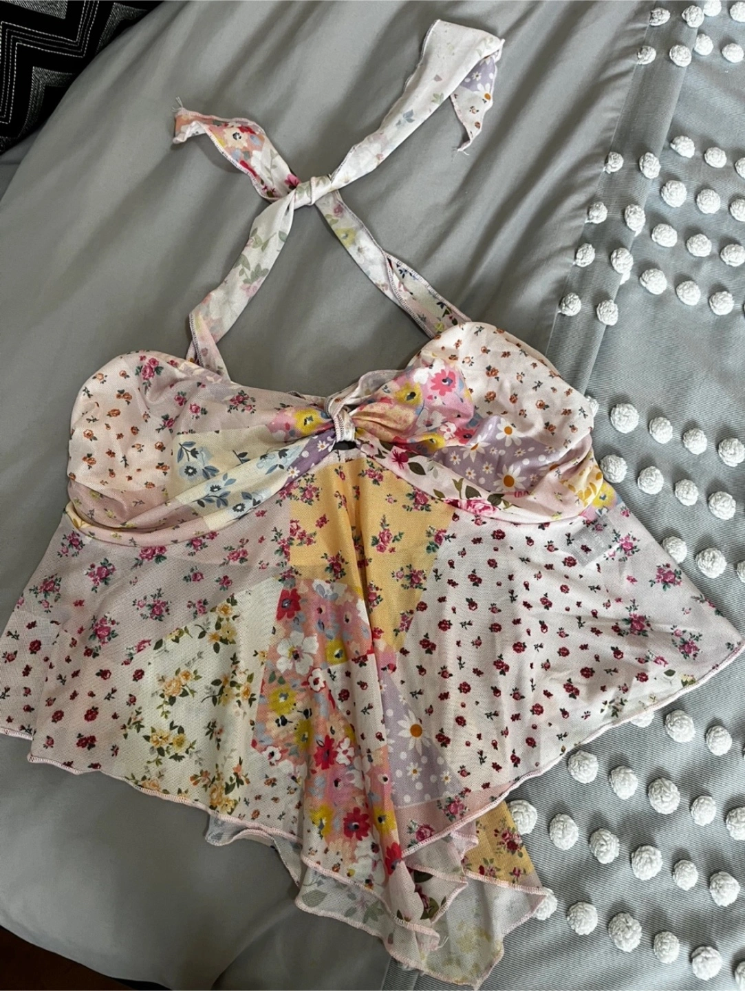 Selling this adorable floral print tie top! It's super cute and stylish, perfect for adding a touch of spring to your wardrobe. The top features a lovely mix of floral patterns and a tie closure. It's in great condition and ready for a new home!