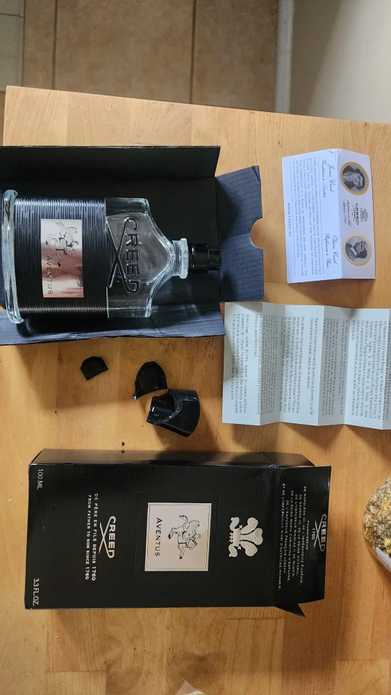 Selling a bottle of Creed Aventus, 100ml size. Comes with the box and papers. The cap is broken. sprayed a few times