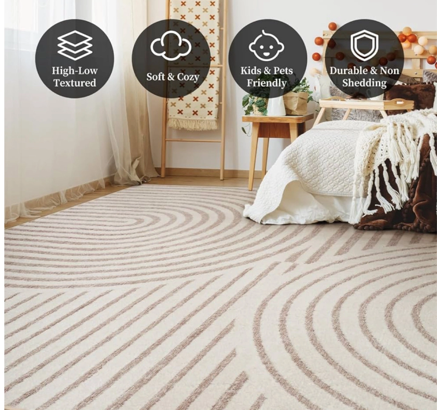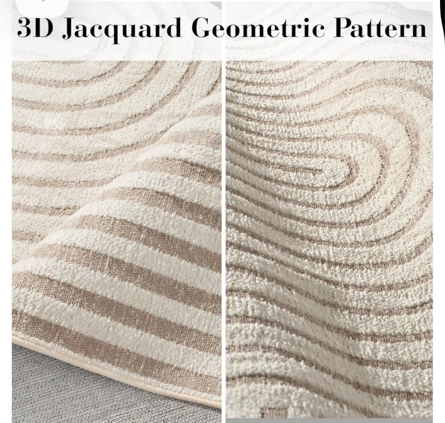 Selling a lovely area rug sized 6x9 feet with a unique 3D jacquard geometric pattern! It's high-low textured, making it soft and cozy underfoot. Plus, it's durable and non-shedding, so it's perfect for homes with kids and pets