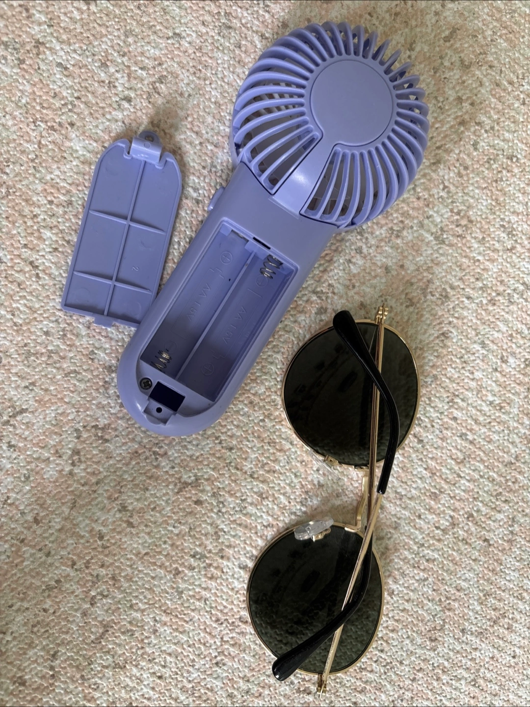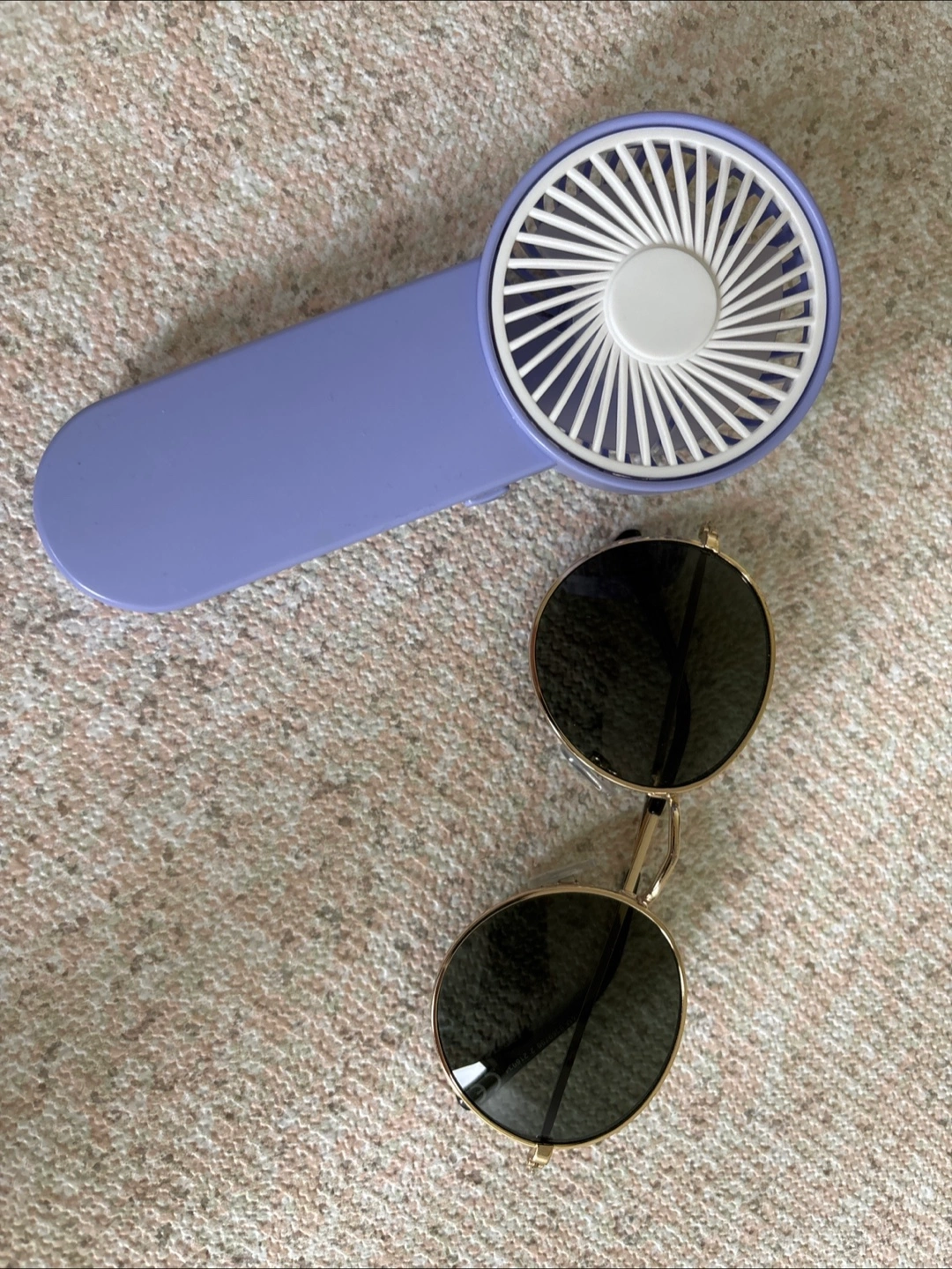 Selling a cute portable mini fan in purple! It's lightweight and easy to carry around, perfect for staying cool on the go, uses battery, also includes a sunglasses