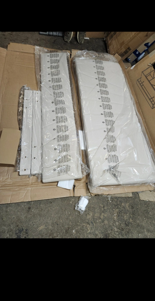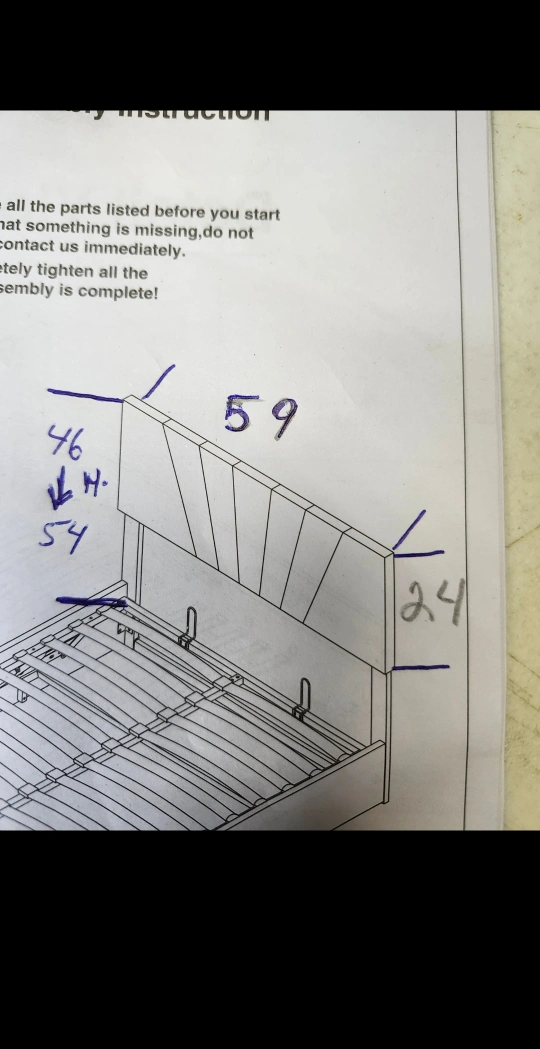 Selling a bed headboard that's still in its original packaging! The dimensions are approximately 59 inches in length, 54 inches in height, and 24 inches in width. Perfect for a bedroom upgrade! easy to build retail 169.99+ really great fabric gorgeous