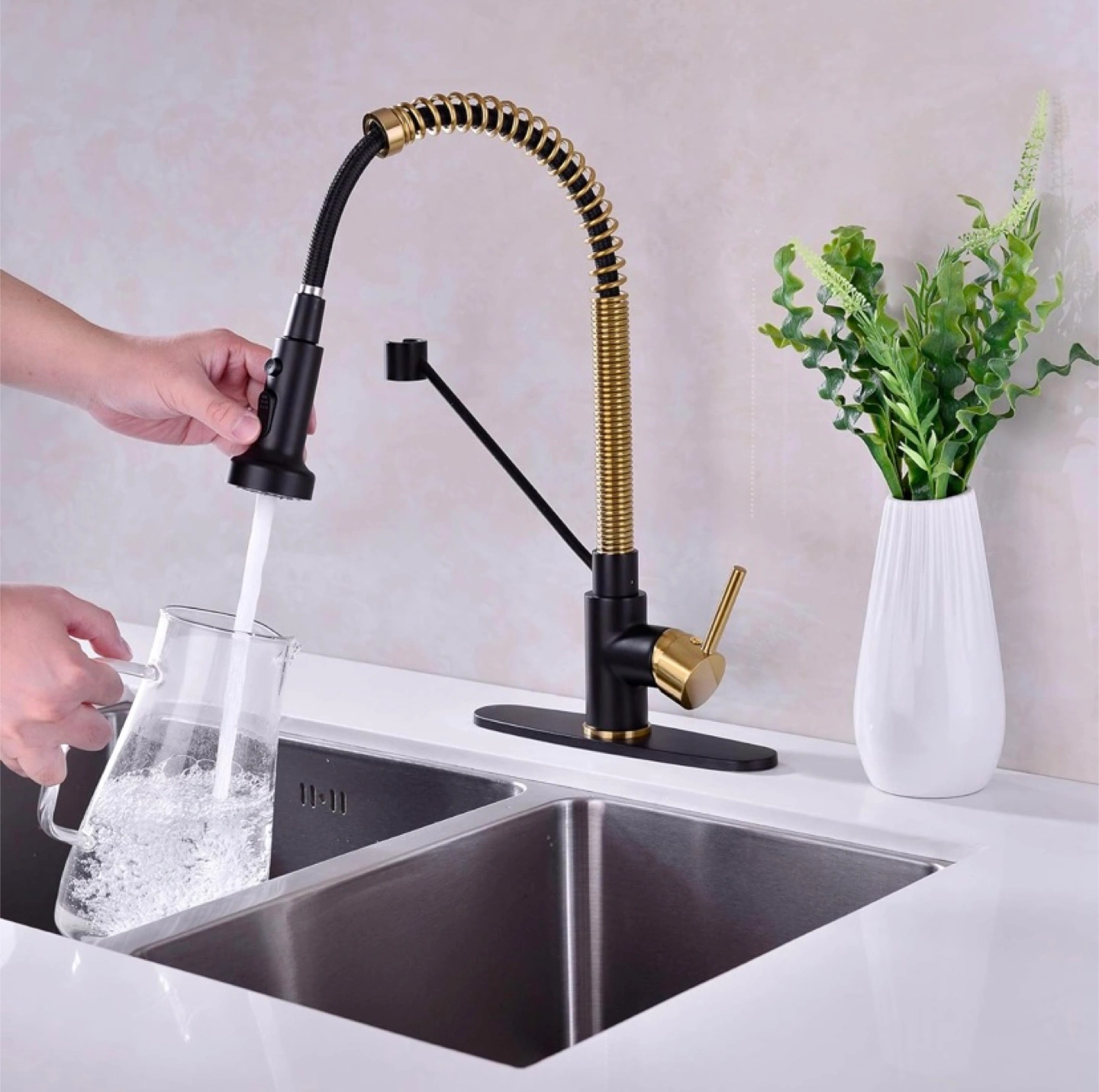 New Kitchen Faucet Stainless Steel Single Handle Pull Down Sprayer Black and Brushed Gold $70 (retail $130 plus tax) Pickup in Whitby