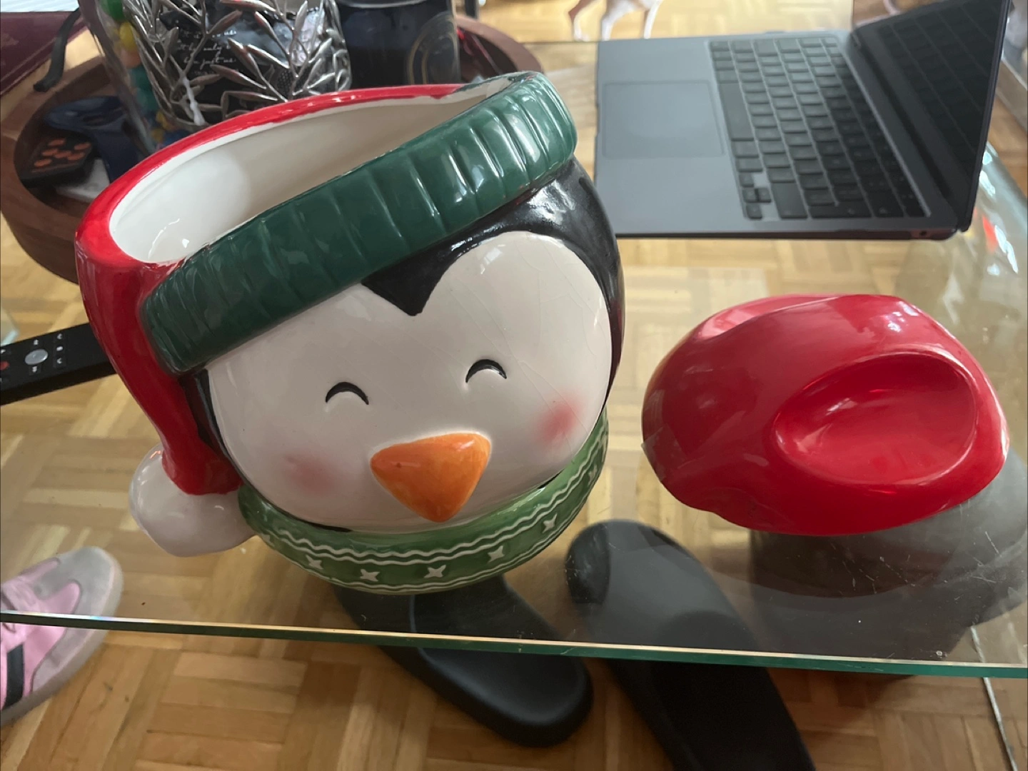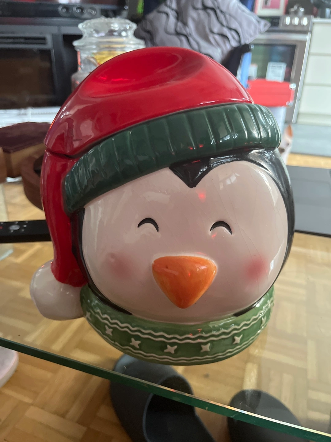 Super cute penguin cookie jar from Toronto's Best CookieLovers! It's in great condition and ready to hold all your favourite treats You can pick up by Carlton and Jarvis area
