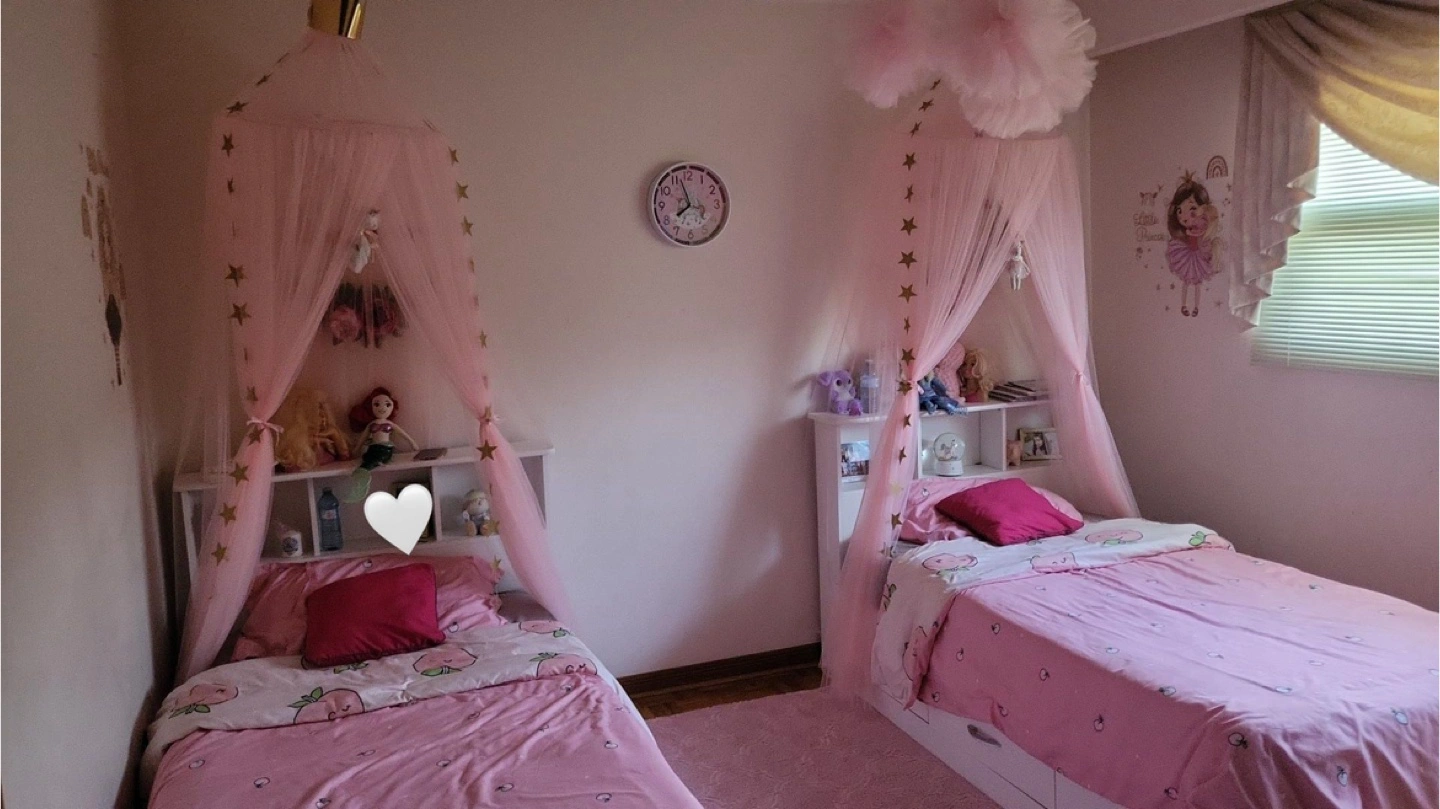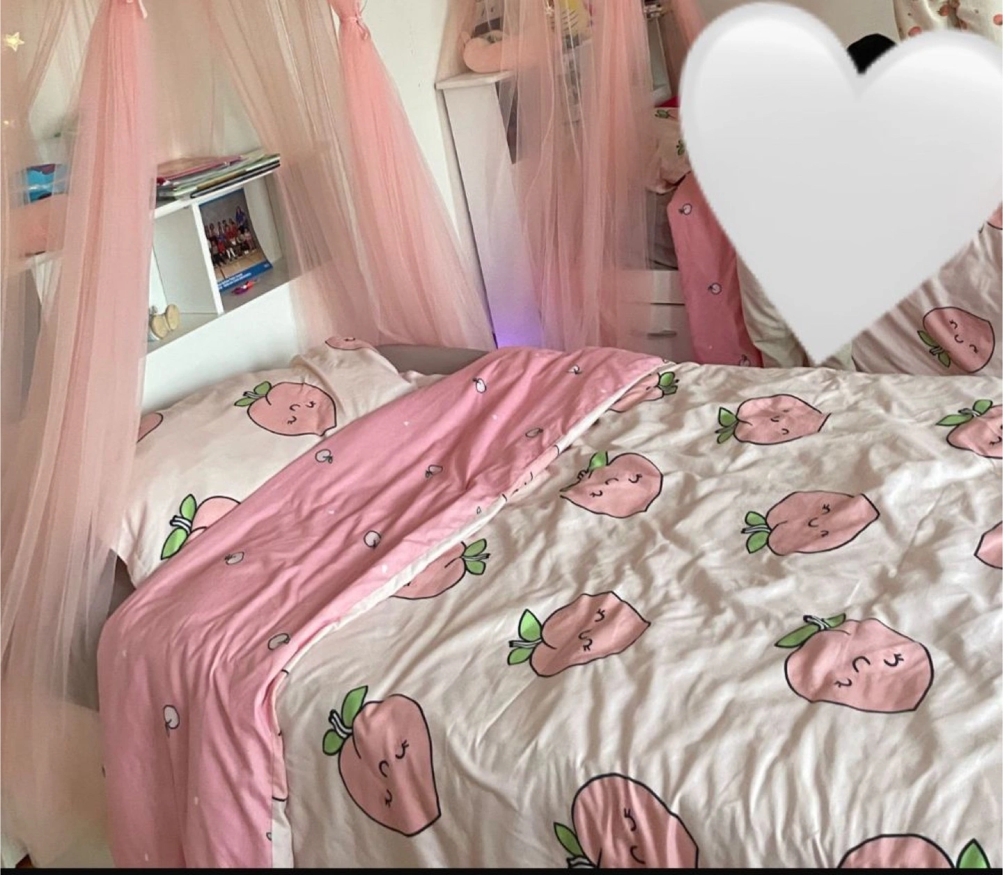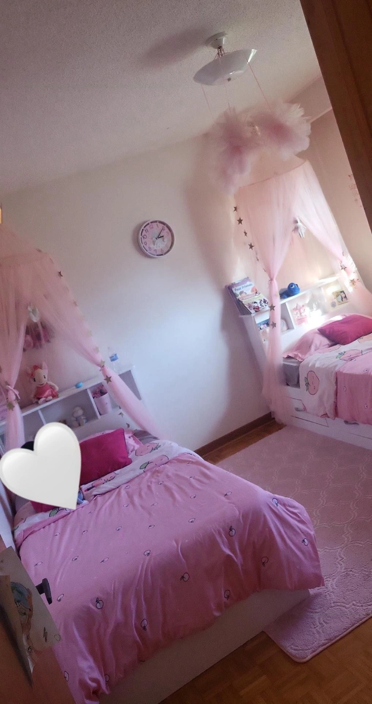 Selling a cute kids' bed with a pink canopy! It's in great condition and would be perfect for a little one's room. The bed frame is white, It also has a built-in bookshelf at the head of the bed.without mattress